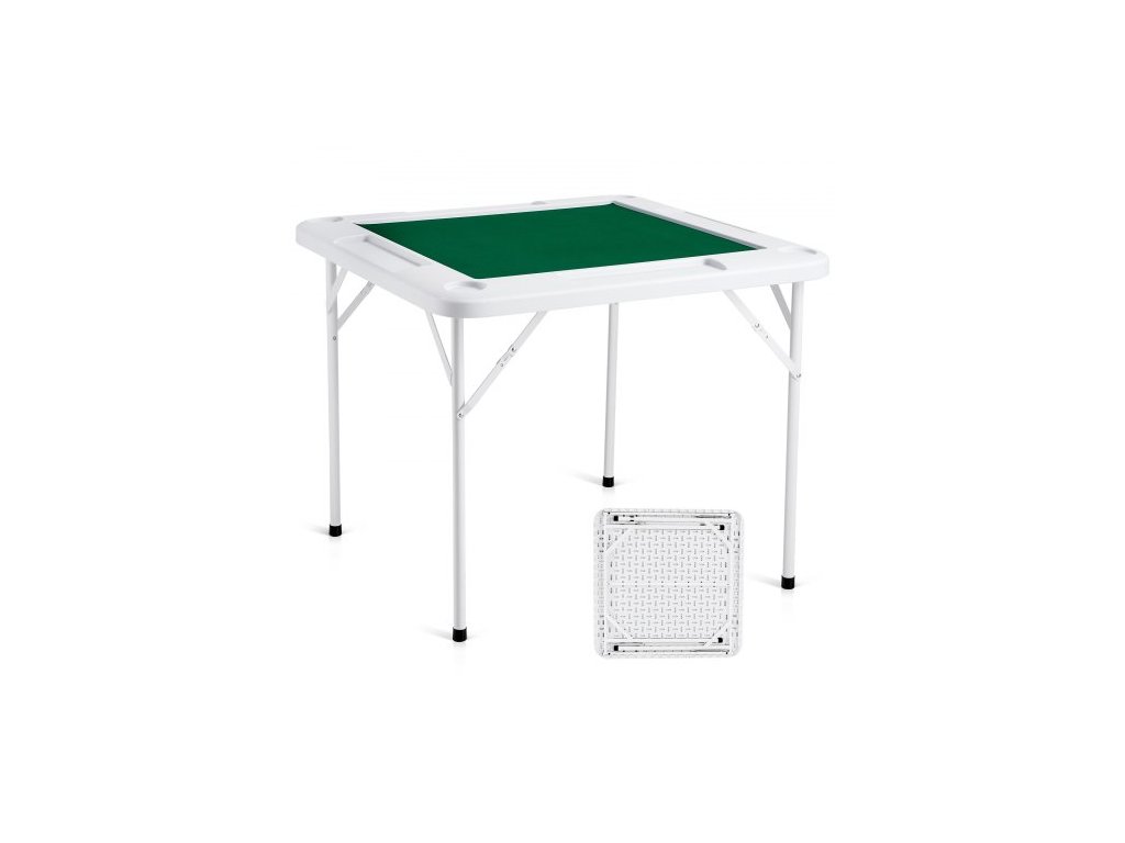 Mahjong stůl, skládací domino stůl pro 4 hráče s odolnou zelenou deskou, přenosný čtvercový karetní stůl se 4 držáky na nápoje a 4 přihrádkami na žetony pro mahjongové pokerové puzzle, 35,4 x 35,4 palceSnadné skládání