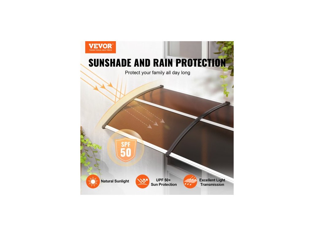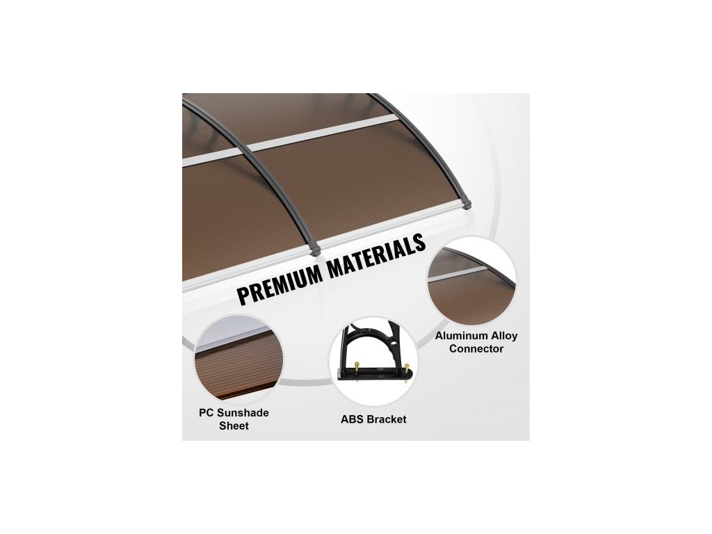 Markýza na okna a dveře, 80" x 40", UPF 50+, polykarbonátová vstupní a venkovní markýza na okna, venkovní, přesahující markýza na přední dveře, sluneční roleta, ochrana proti UV záření, dešti a sněhu, dutá deska