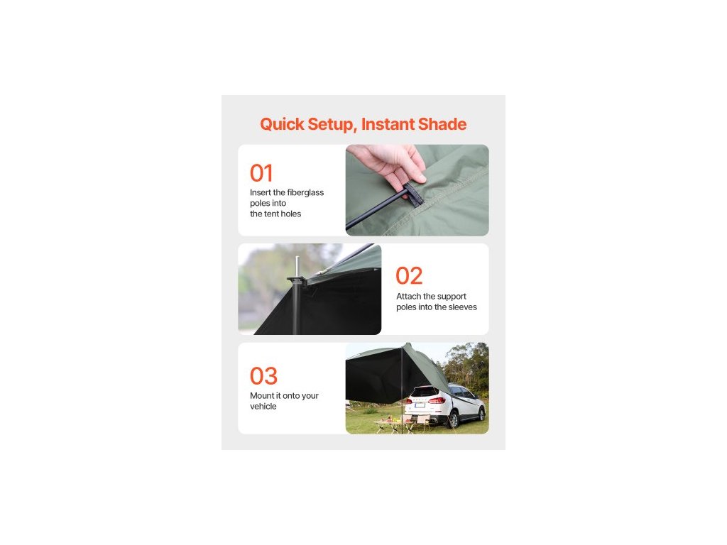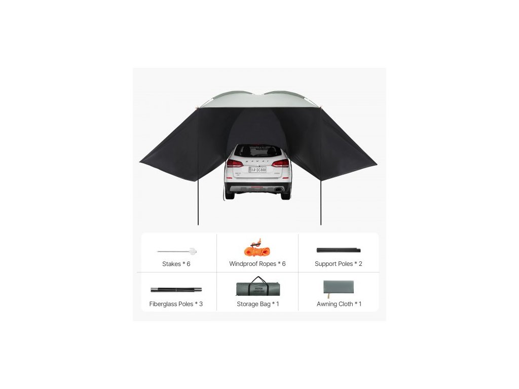 Markýza na vozidlo , velká boční markýza s krytím 10' x 7', PU 2000mm UV50+, s prodlouženými bočními stříškami a přenosnou úložnou taškou, vhodná pro nákladní automobily, SUV, dodávky a obytné vozyKvalita, které můžete věřit