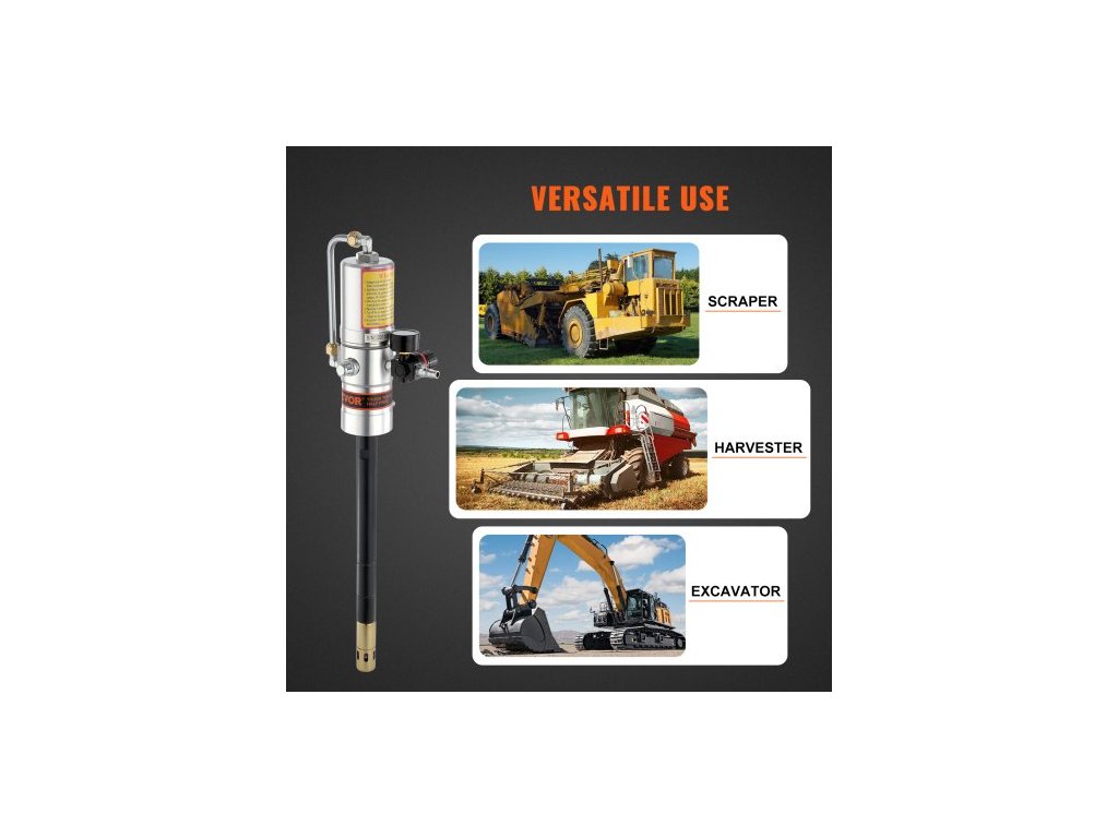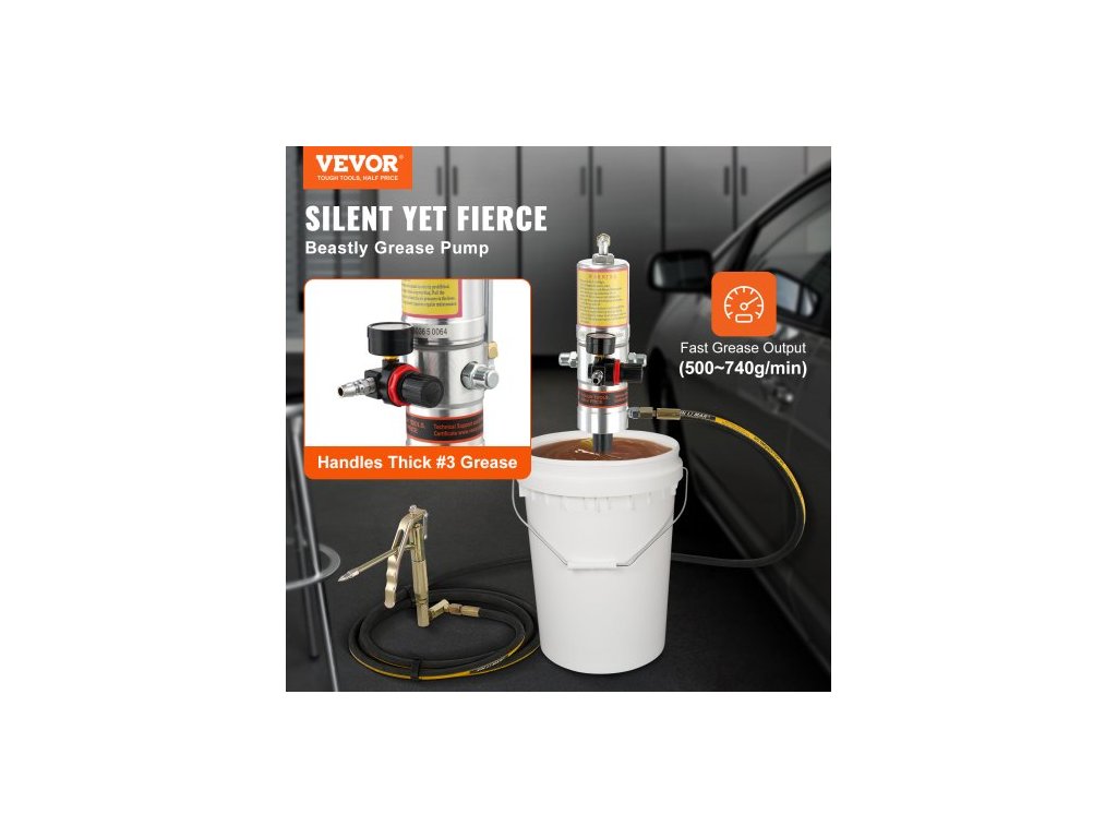 Mazací čerpadlo , pneumatické mazací čerpadlo s tlakovým poměrem 50:1 s vysokotlakou hadicí o délce 13 stop a mazací pistolí, pneumatické mazací čerpadlo, přenosné mazací mazací čerpadlo s otočnou hlavou mazacího pistole o 360°Mazání je nyní snazší