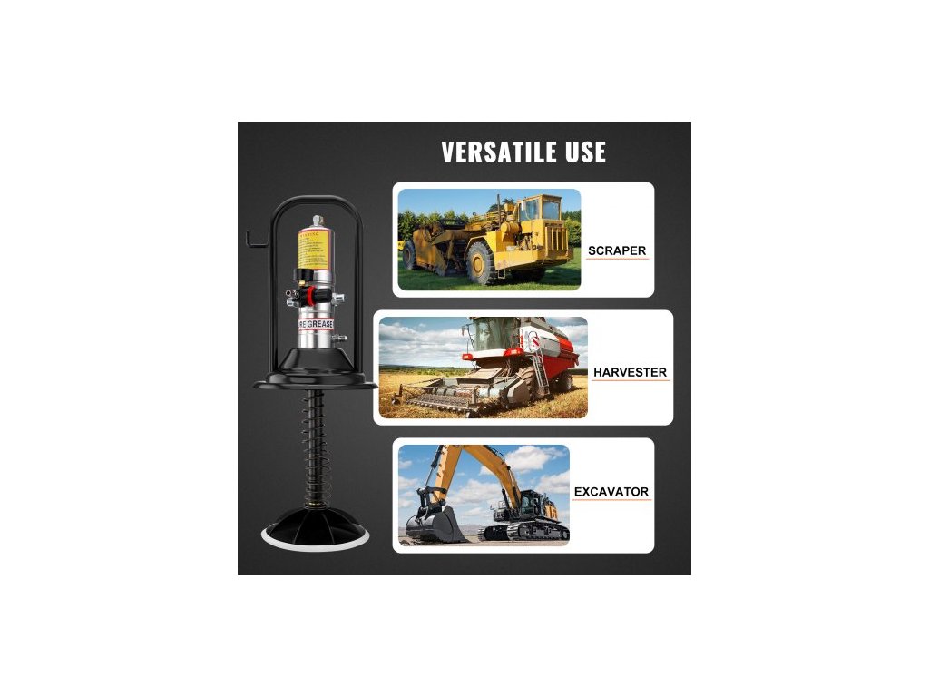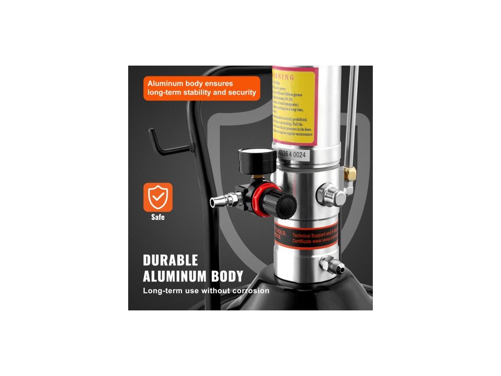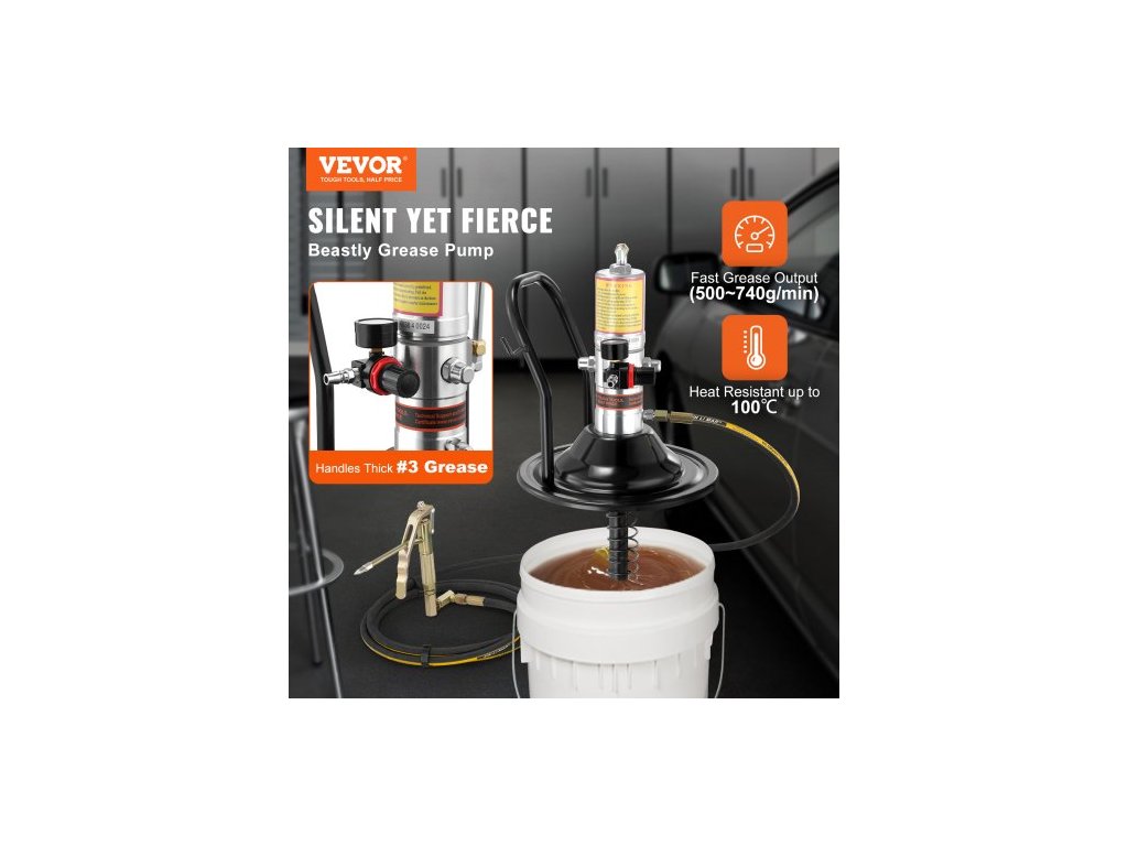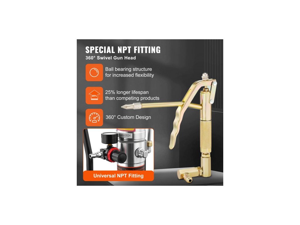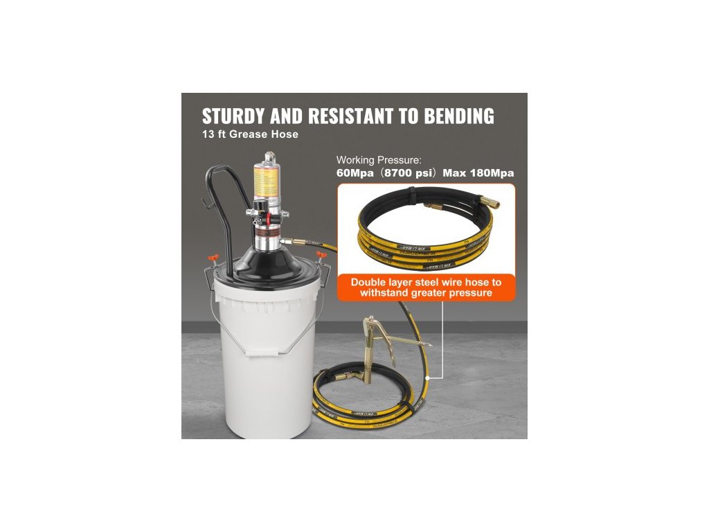 Mazací čerpadlo , pneumatické mazací čerpadlo s tlakovým poměrem 50:1, vysokotlakou hadicí o délce 13 stop a mazací pistolí, pneumatické mazací čerpadlo s uzávěrem válce, přenosné mazací čerpadlo, mazací čerpadlo, hlavice pistole s otočením 360°Mazání je nyní snazší