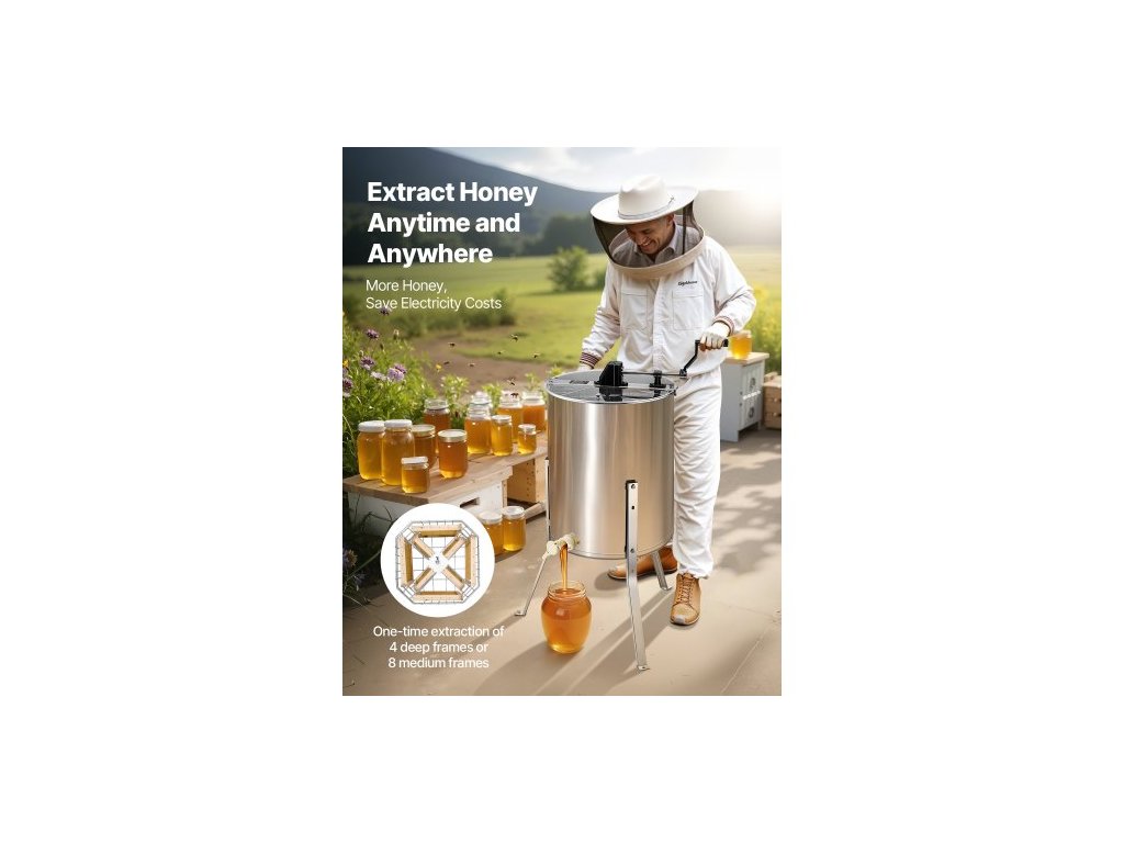Medomet , ruční medomet s rámem 4/8 a průhledným víkem, nerezový voštinový bubnový odstředivý ...