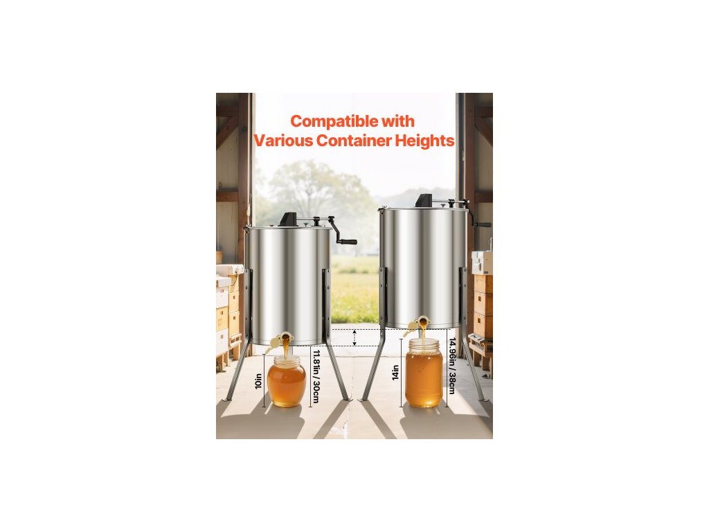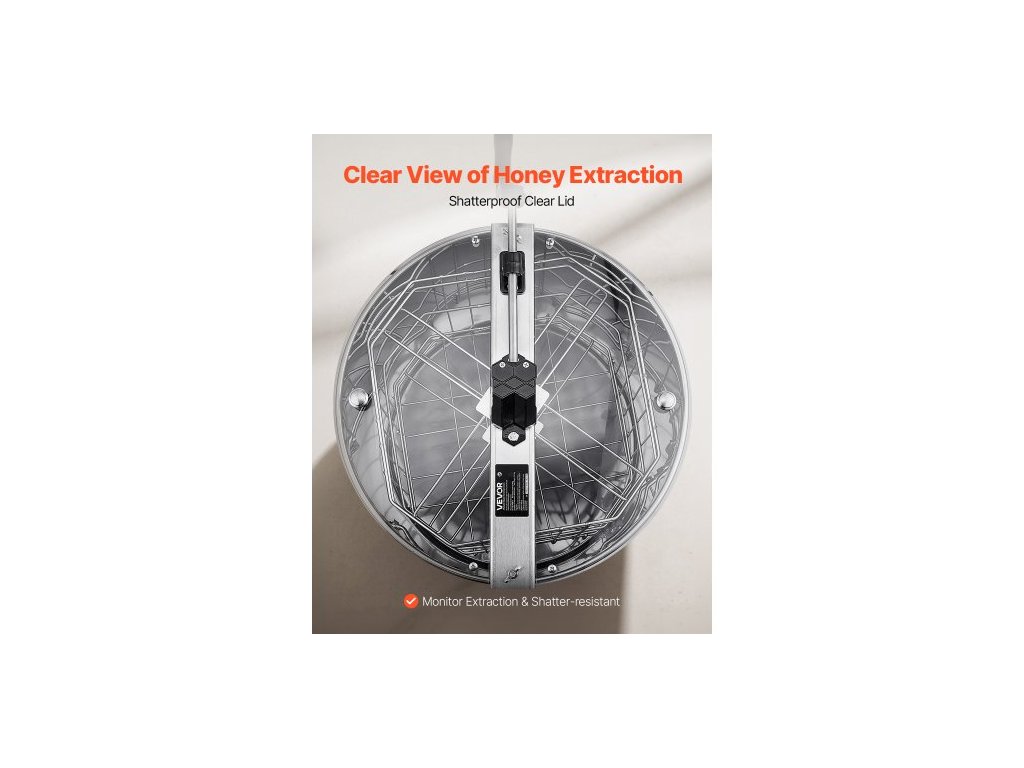 Medomet , ruční medomet s 4/8 rámem a průhledným víkem, nerezový voštinový bubnový odstředivý ... 18,50 x 24,01 x 42,51 palce, Materiál lopaty: Nerezová ocel 201, Kompatibilní velikost rámu: Velký rám (D x Š): 485 mm x 235 mm / 19,09 palce x 9,25 palce, Vnitřní materiál rámu: Nerezová ocel 201, Tloušťka podpěrné nohy: 1,2 mm / 0,05 palce, Číslo modelu položky: HE-18C-48M-ZJ, Hmotnost výrobku: 12,1 kg / 26,67 lbs (včetně veškerého příslušenství), Velikost podpěrné nohy: Šířka: 38 mm / 1,49 palce, Délka: 700 mm / 27,56 palce, Velikost lopaty: Vnitřní průměr: 470 mm / 18,50 palce, Výška: 610 mm / 24,02 palce (včetně kuželového dna), Tloušťka stěny: 0,65 mm / 0,026 palce, Výška od Podložka: 30-38 cm (nastavitelná) / 11,81-14,96 palce, hlavní materiál: nerezová ocel 201Doplňkové parametry