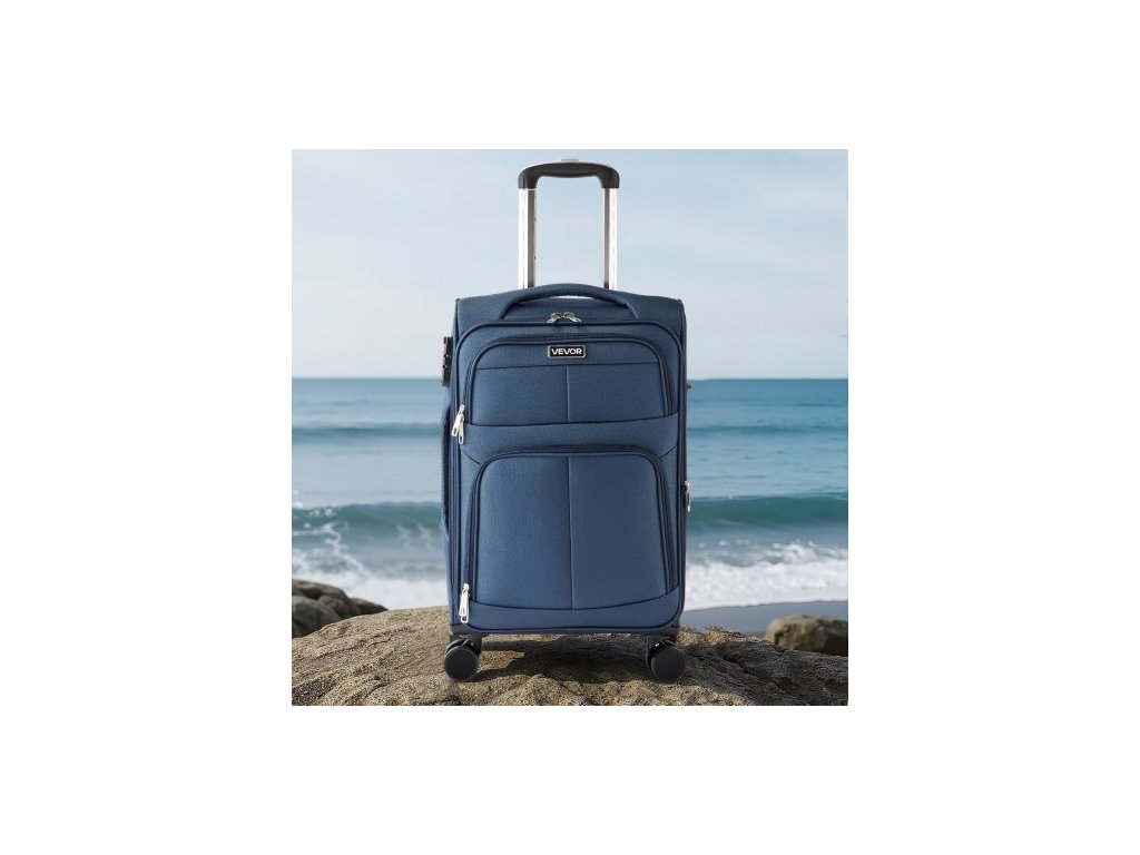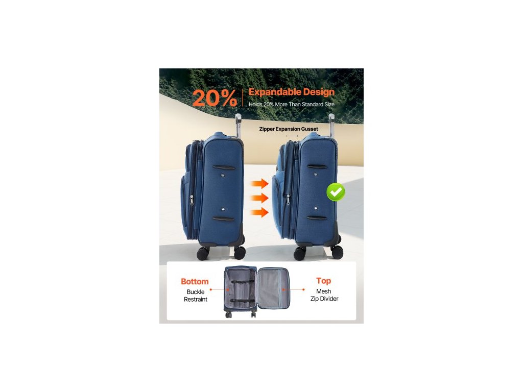 Měkké příruční zavazadlo s roztažitelnou kapsou na zip a TSA zámkem, 20 palců / 50,8 cm, lehké kostkované kufry s roztažitelnou kapsou na zip a TSA zámkem, modré