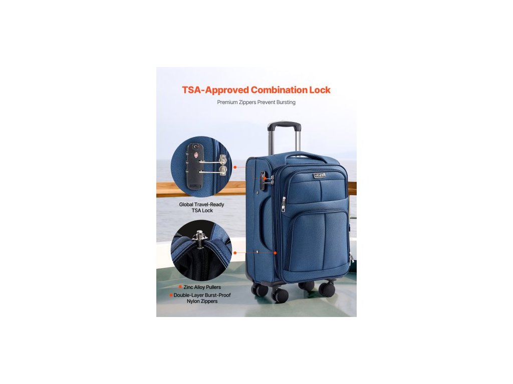 Velikost zavazadla: 20" Barva: Modrá Rozšiřitelné: Rozšiřující klínek na zip Číslo modelu položky: NL018 Rozměry produktu (D x Š x V): 15,75 x 11,22 x 24,41" / 400 x 285 x 620 mm Čistá hmotnost: 7,03 lbs / 3,19 kg Hlavní materiál: Keprová oxfordská tkanina, Zámek: TSA zámek