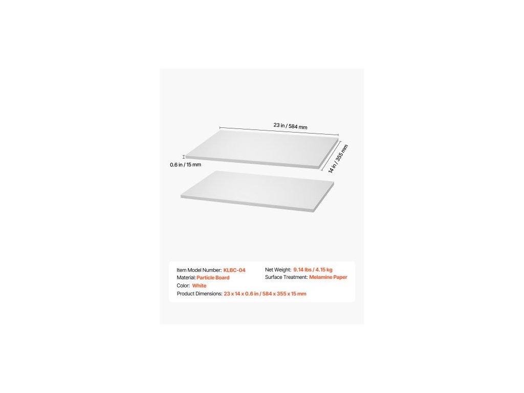 Barva: Bílá,Číslo modelu položky: KLBC-04,Povrchová úprava: Melaminový papír,Materiál: Dřevotříska,Rozměry výrobku: 23 x 14 x 0,6 palce / 584 x 355 x 15 mm,Čistá hmotnost: 9,2 lbs / 4,2 kg