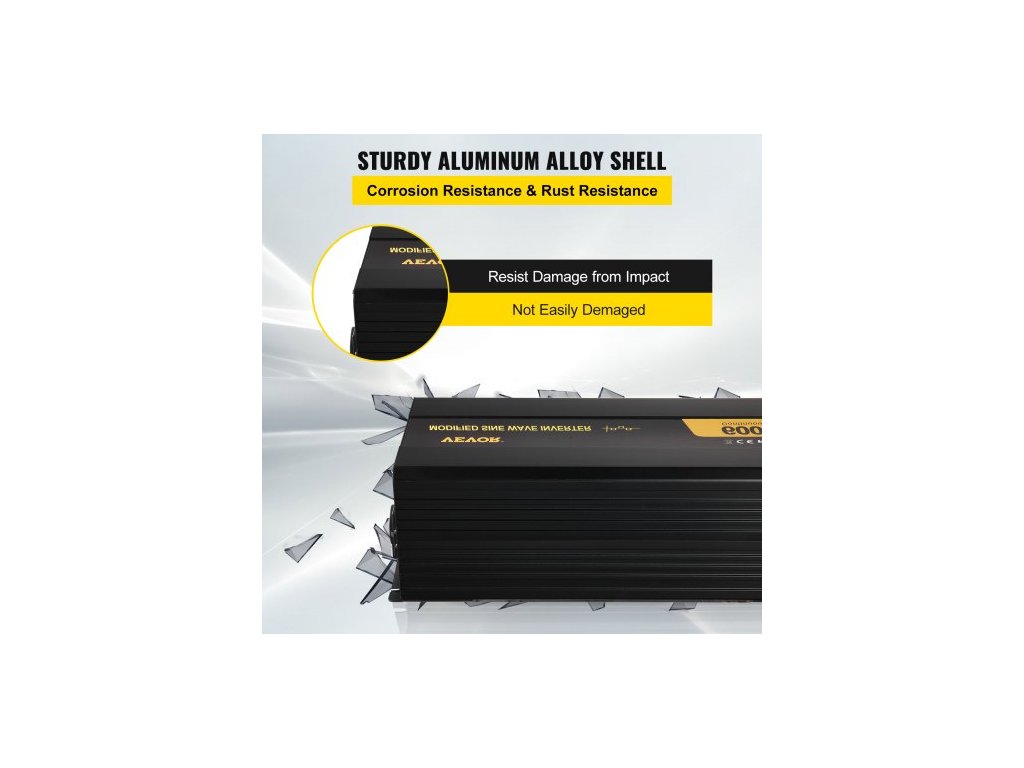 Měnič , 6000 W, modifikovaný sinusový měnič DC 12 V na AC 230 V do auta s LCD displejem, dálkovým ovladačem, LED indikátory, měnič do EU zásuvek, pro auto, obytný vůz, nákladní vůz, loď, cestování, kempováníOdolná hliníková slitina