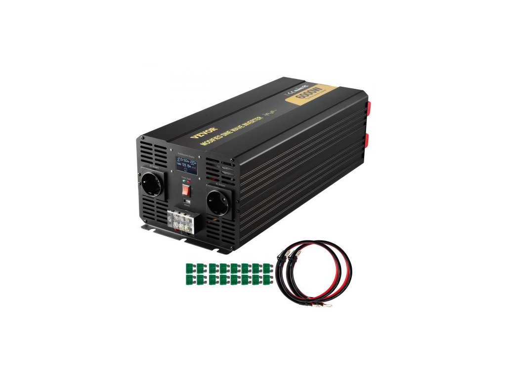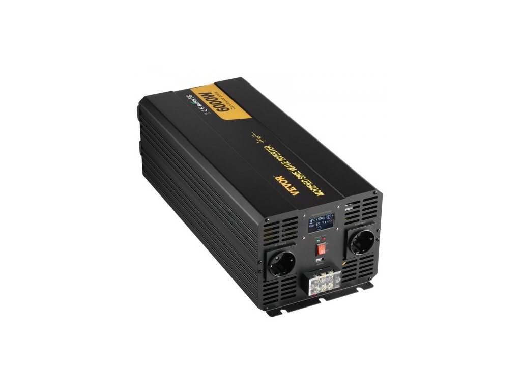 Vstupní napětí DC: 12 V DC, Trvalý výkon: 6000 W, Výstupní napětí AC: 230 V AC, Typ zástrčky: Zásuvka EU, Rozměry výrobku (D x Š x V): 20,3 x 8,1 x 6,4 palce/515 x 205 x 162 mm, Výstupní přepěťový výkon: 12000 W, Číslo modelu položky: TM-6000 W, Ochrana proti přepětí: 16 V, Vlastnosti: LCD displej, Ochrana proti podpětí Ochrana: 10 V, Výstupní tvar vlny: Modifikovaná sinusová vlna, Výstupní frekvence: 60 Hz