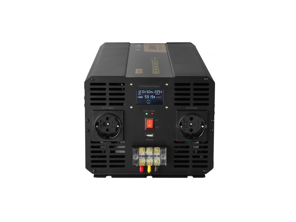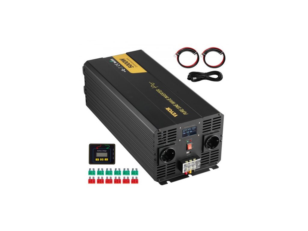 Měnič s čistou sinusoidou, 5000 W, měnič výkonu, DC 12 V na AC 230 V do auta s LCD displejem, USB portem a dálkovým ovladačem, měnič pro auto, obytný vůz, nákladní automobil, solární systém, cestování, kempováníStabilní čistá sinusoida