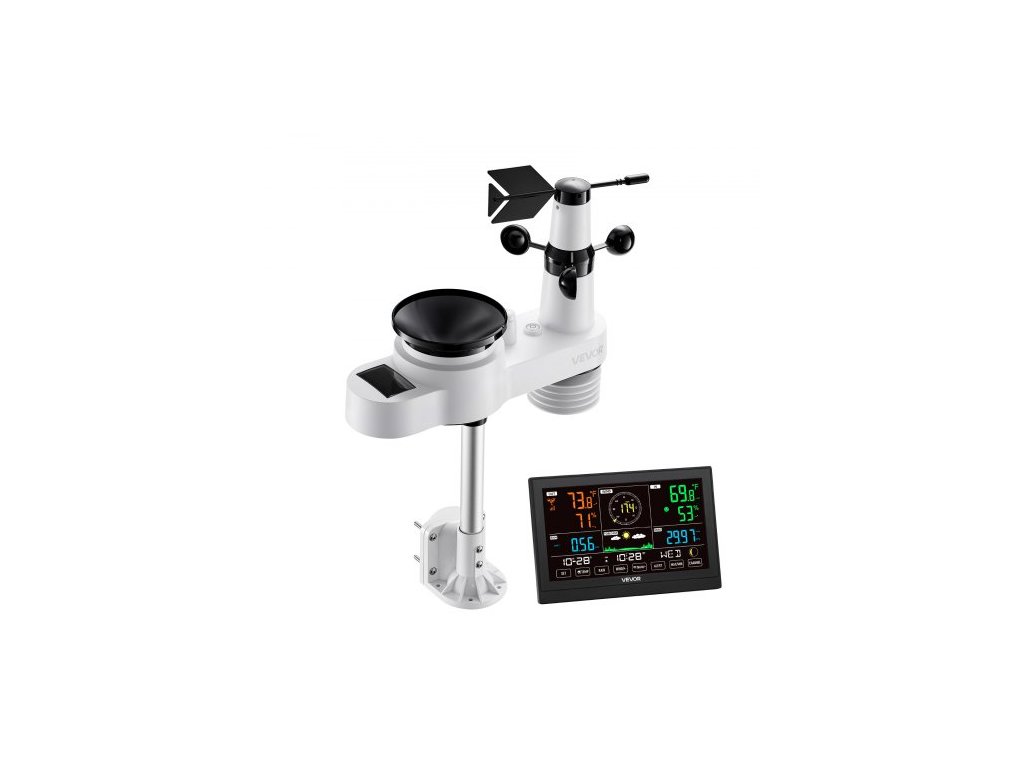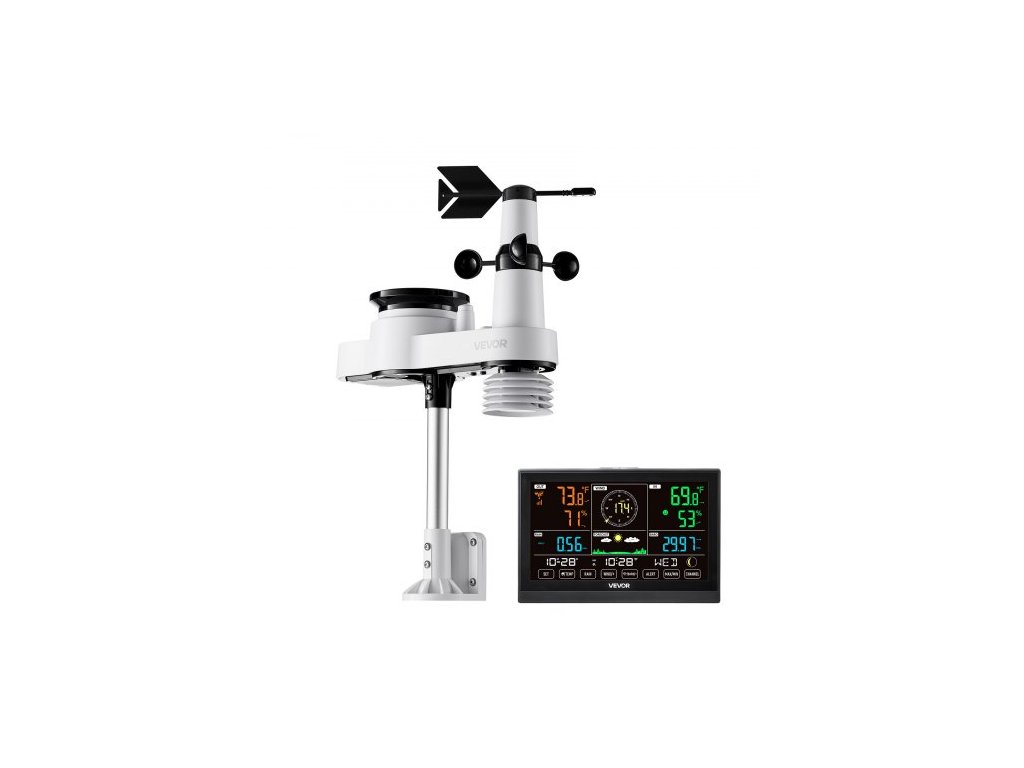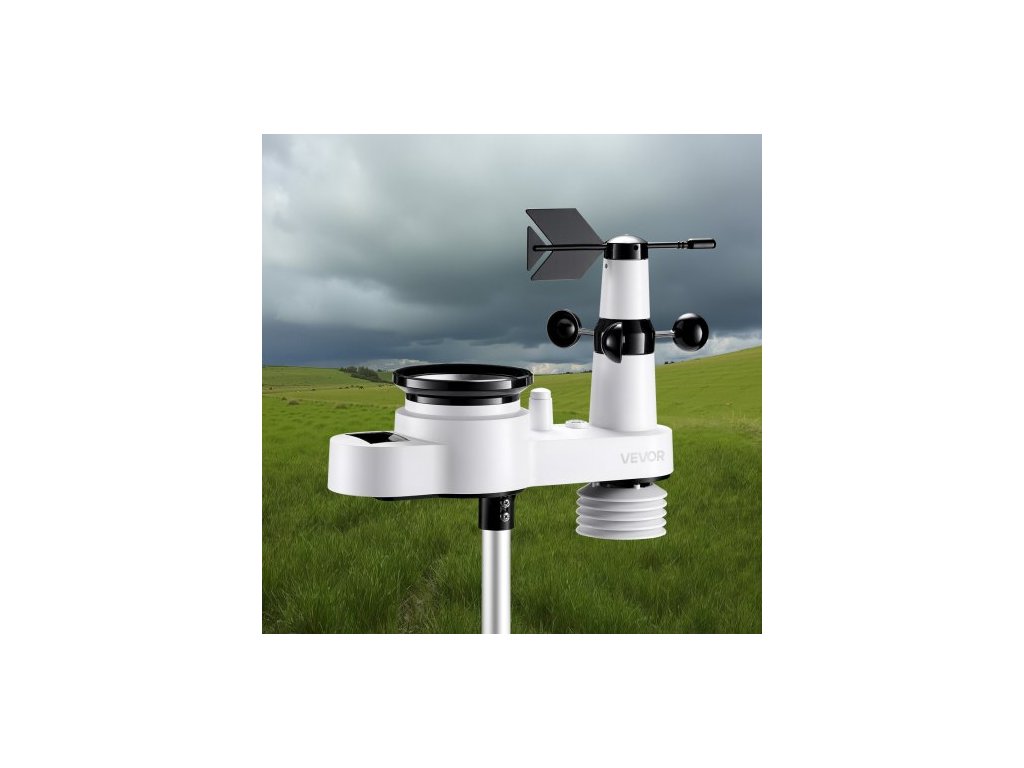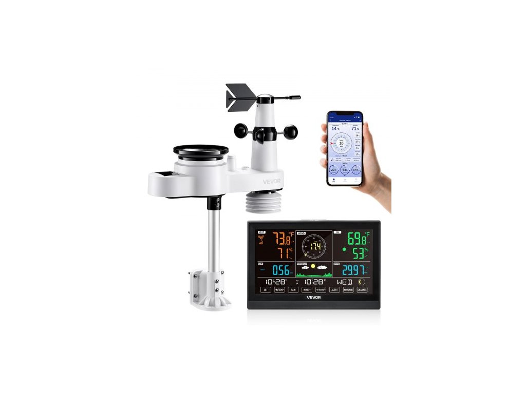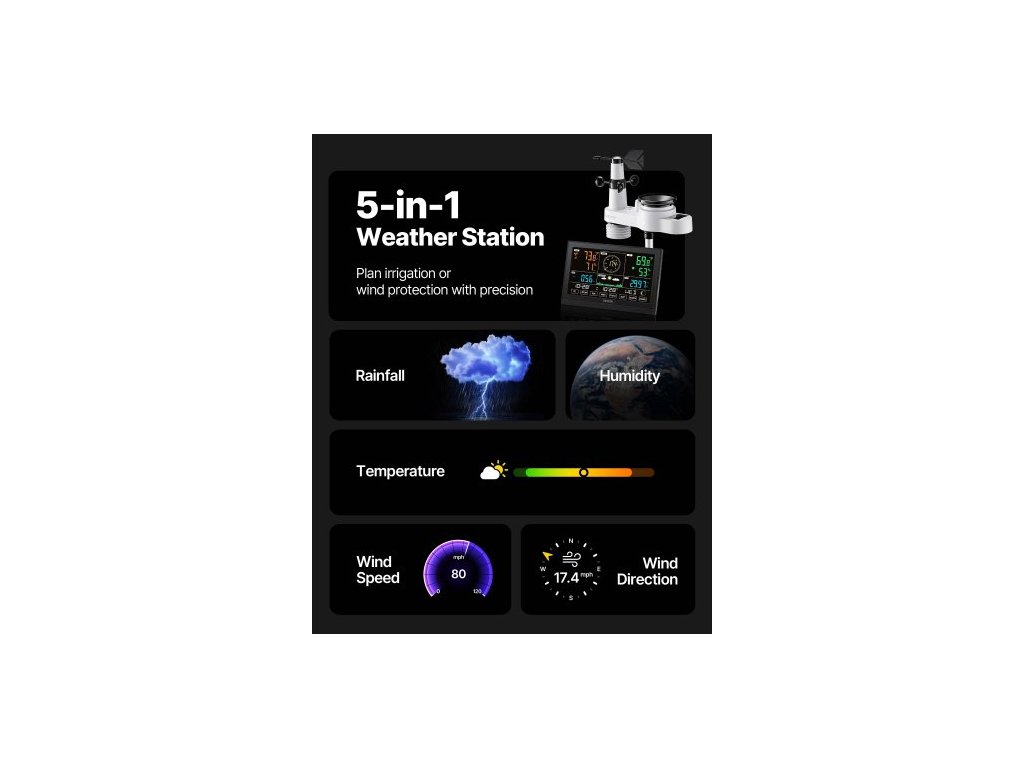 Meteorologická stanice 5 v 1 s Wi-Fi, 190,5mm VA displej, bezdrátový solární venkovní senzor, srážkoměr, pro vnitřní i venkovní použití s předpovědí počasí, rychlostí větru, směrem, teplotou, vlhkostí a srážkami.