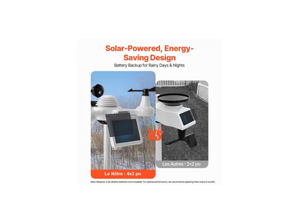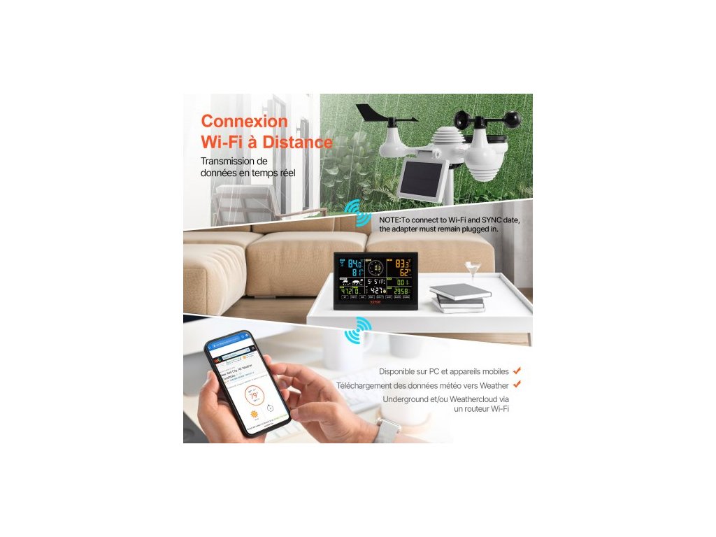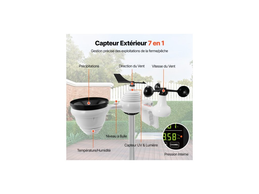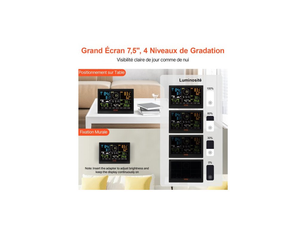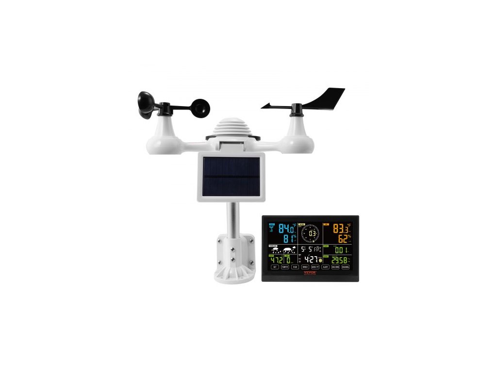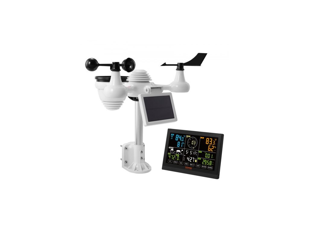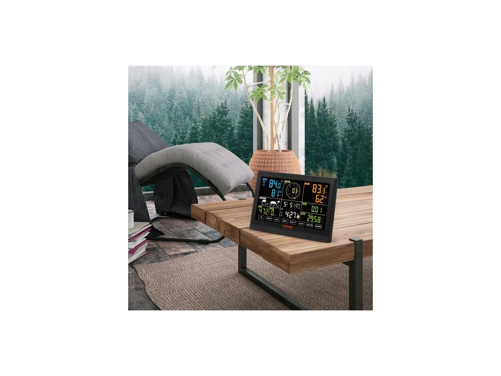 Meteorologická stanice 7 v 1 s Wi-Fi, 19,1cm (7,5") barevný displej, domácí meteorologická stanice pro vnitřní i venkovní použití, se solárním bezdrátovým venkovním senzorem a upozorněními na alarm, pro teplotu, vlhkost, rychlost/směr větru, déšťSenzor 7 v 1