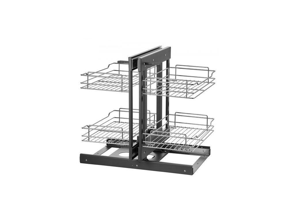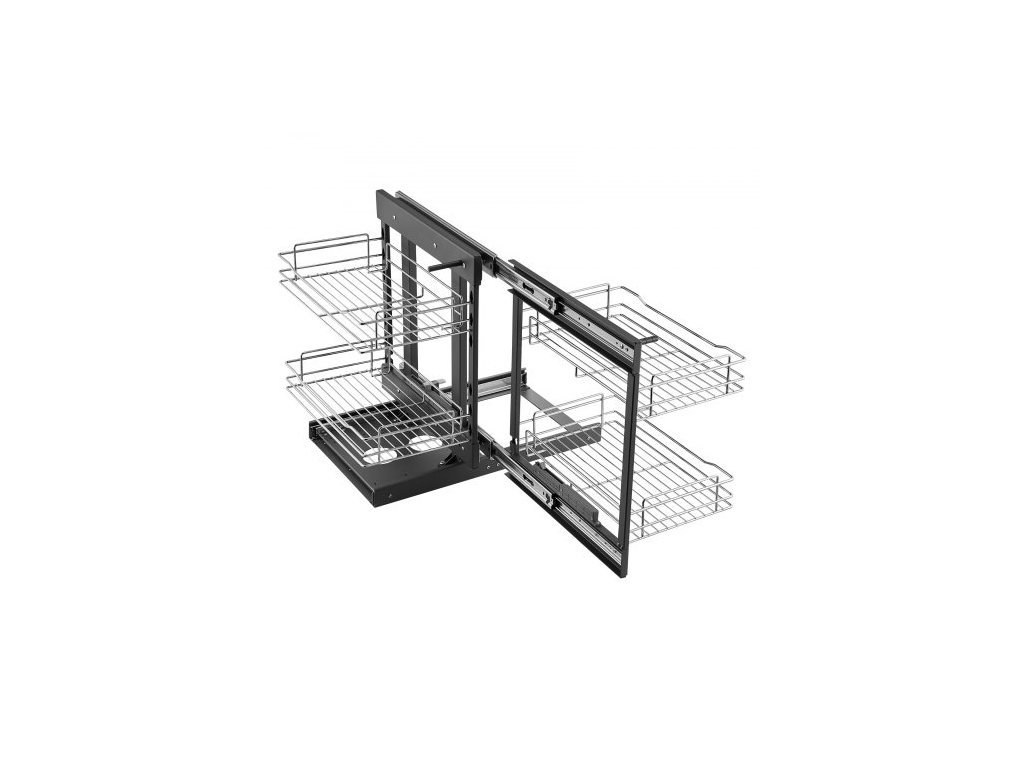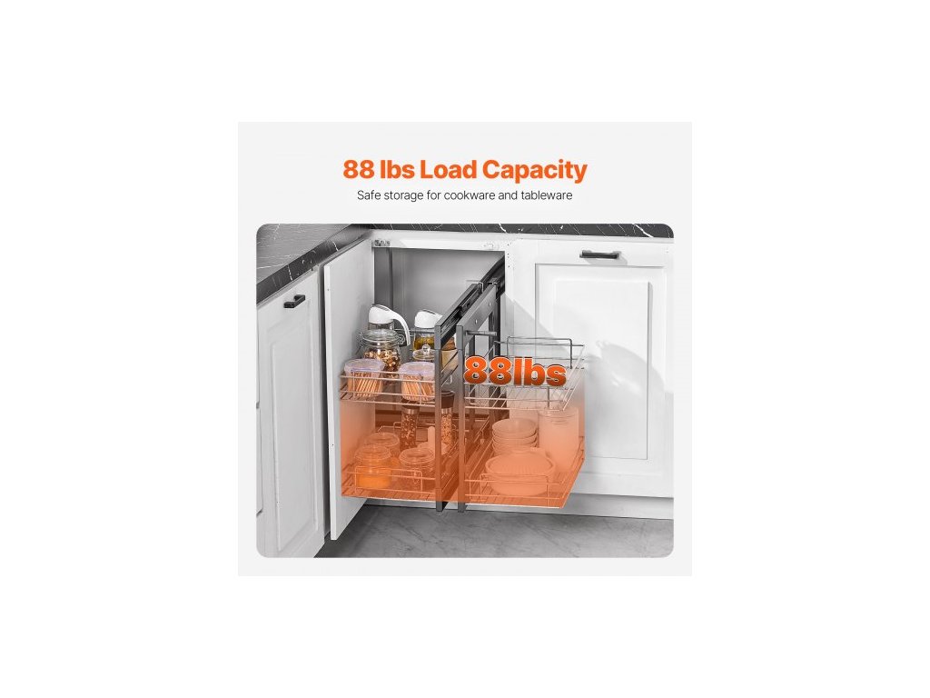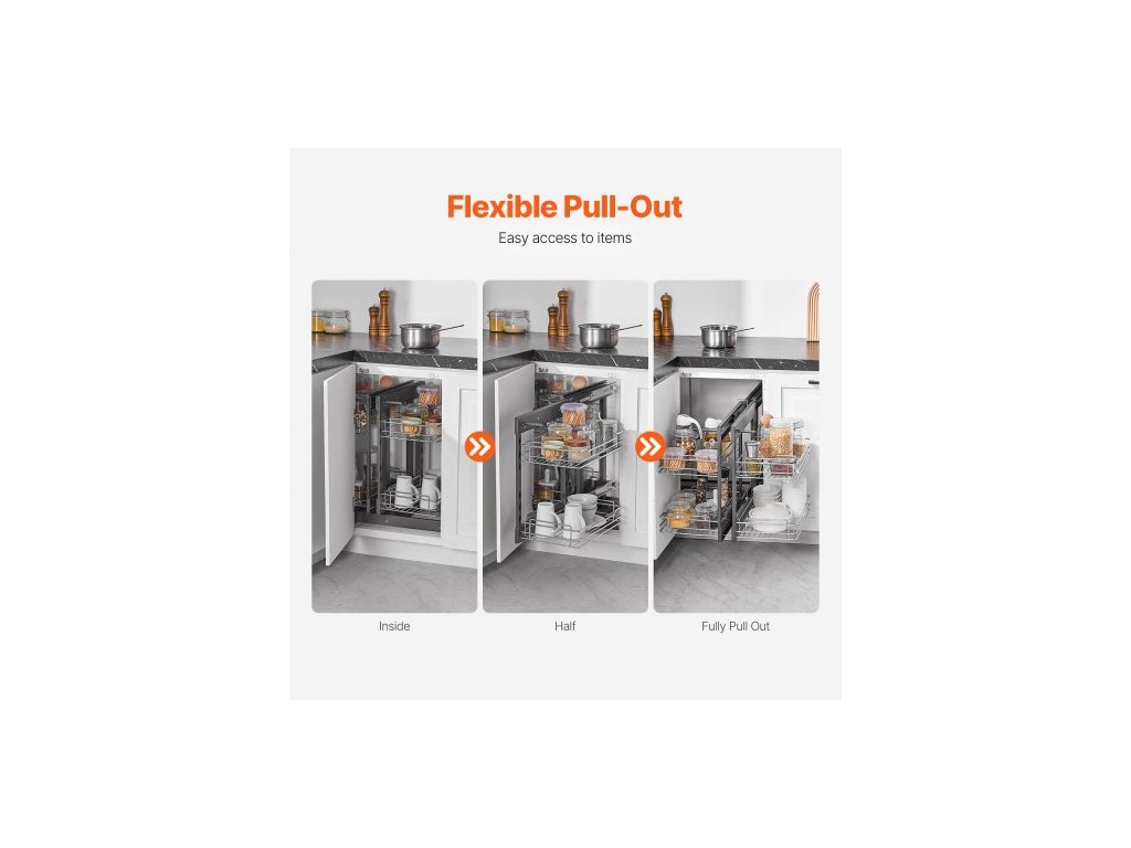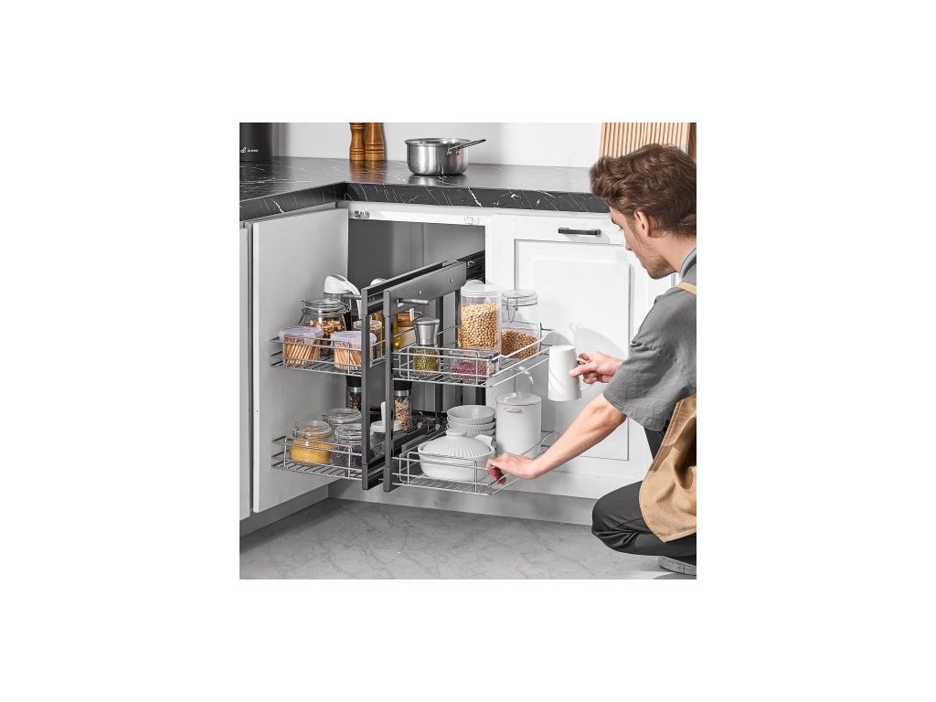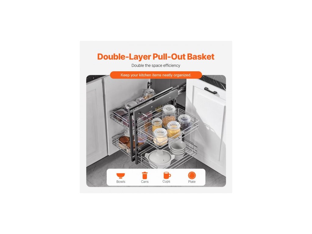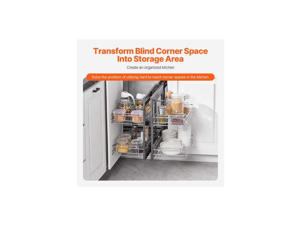 Výsuvný organizér do rohu s otevíráním min. 15"Š, 2patrový organizér na kuchyňské skříňky se 4 policemi, úložný koš z chromované uhlíkové oceli, výsuvný organizér, kompatibilní s levým a pravým otevíránímÚhledné úložné prostory