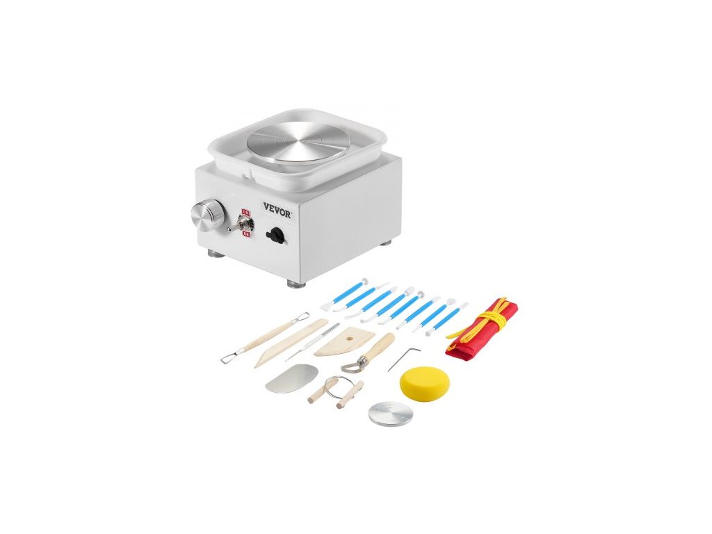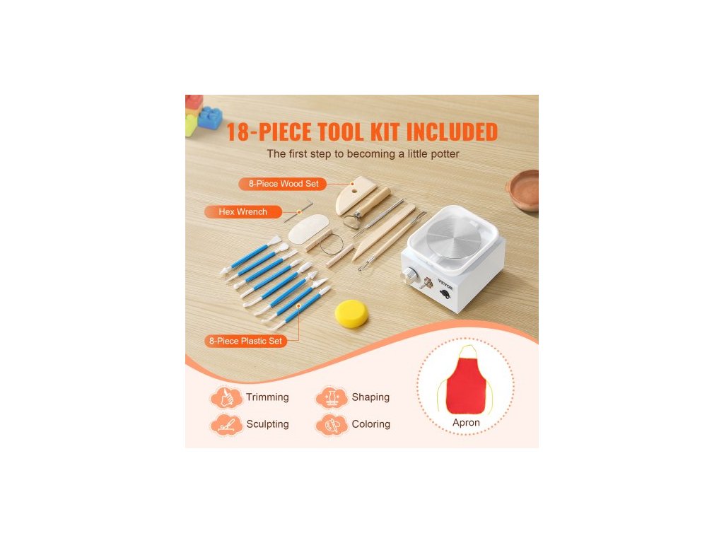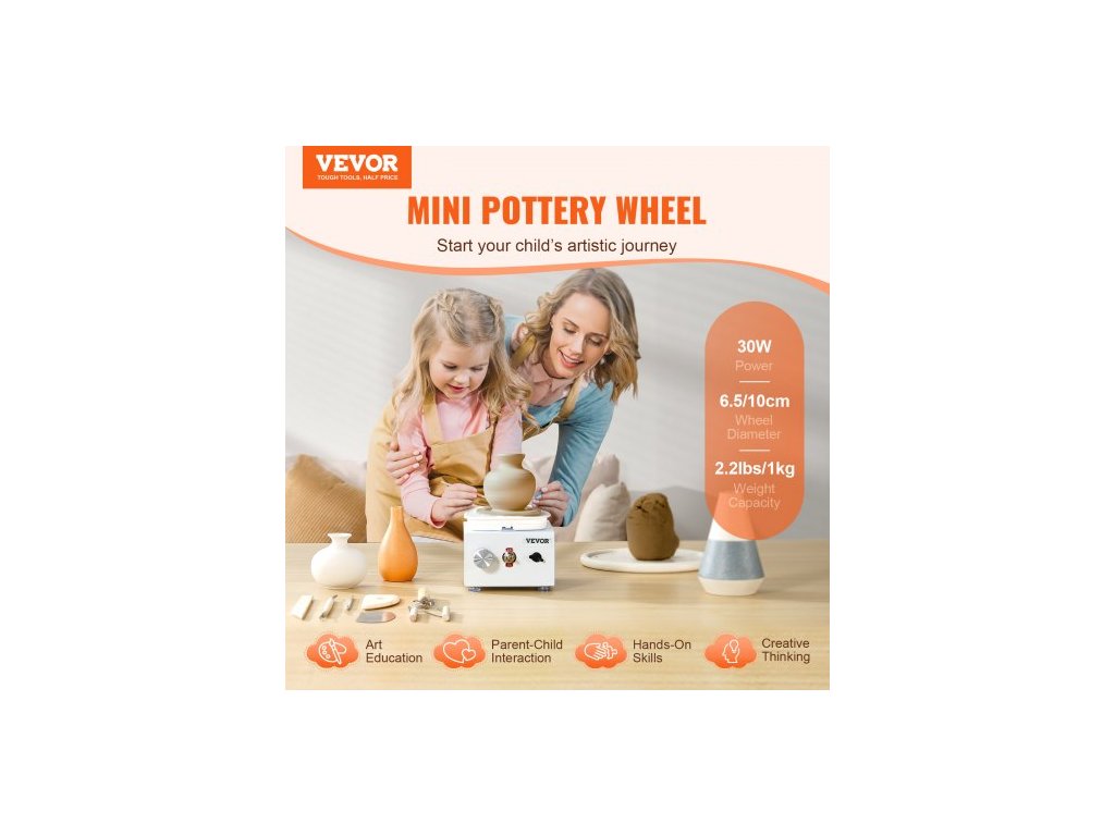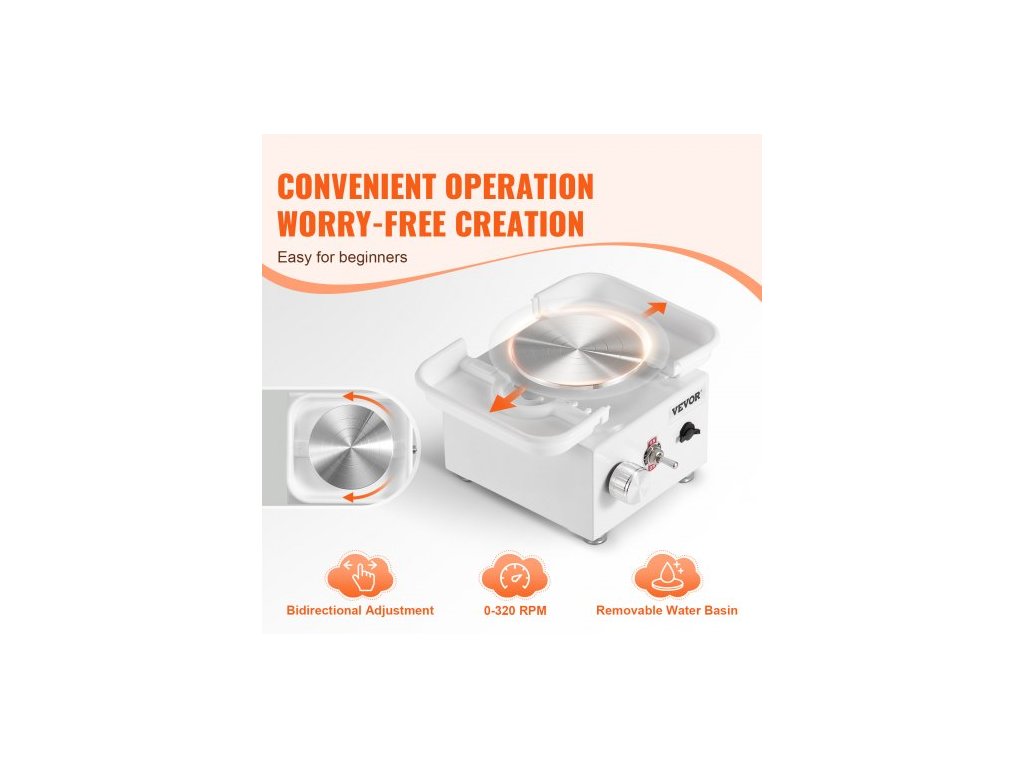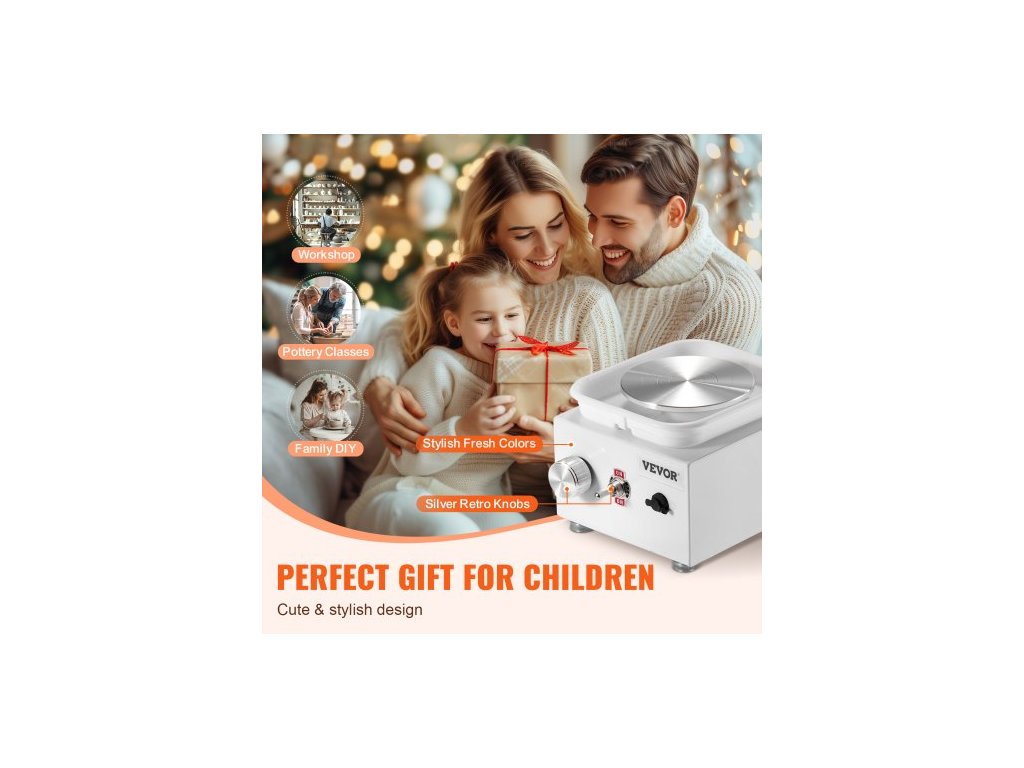 Mini hrnčířský kruh, 0-320 ot./min. Nastavitelná rychlost, odnímatelná tvarovací miska, 2,56"/3,94" 2 otočné talíře, elektrický keramický kruhový stroj, 18 ks příslušenství, pro umělecké řemeslné práce, domácí kutily, bílýUžijte si zábavný čas rodičů s dětmi
