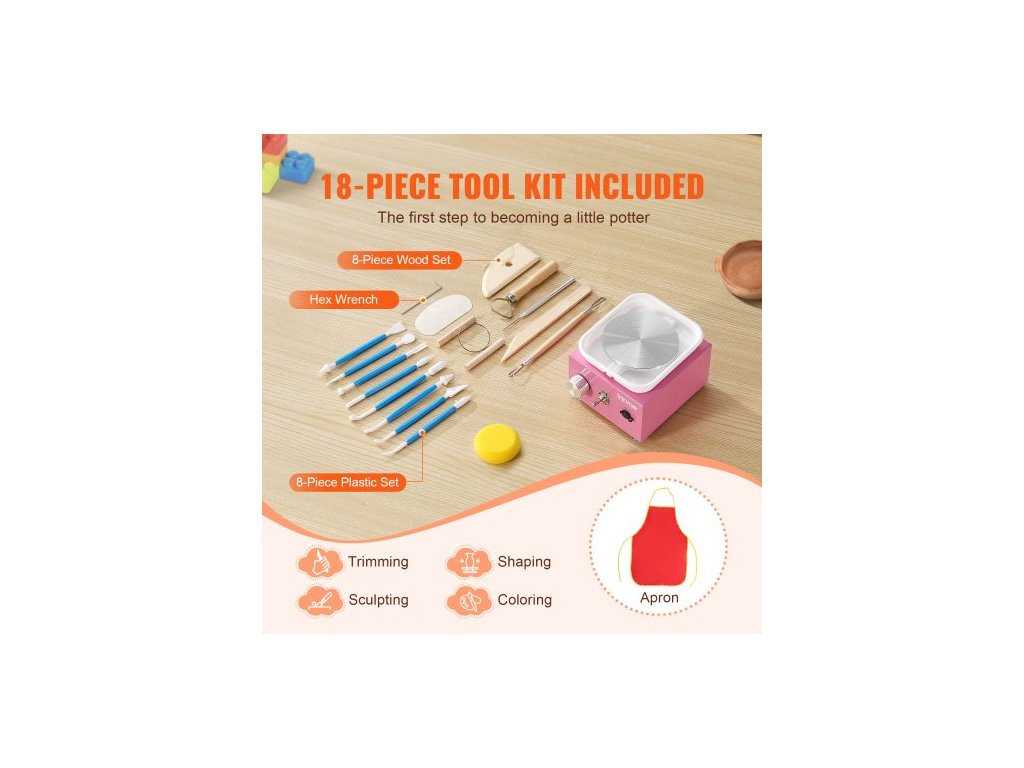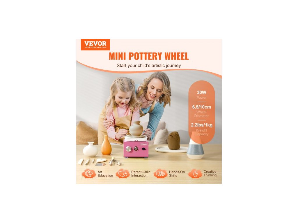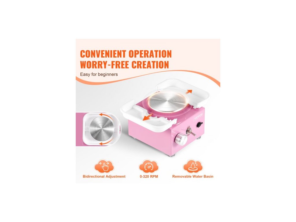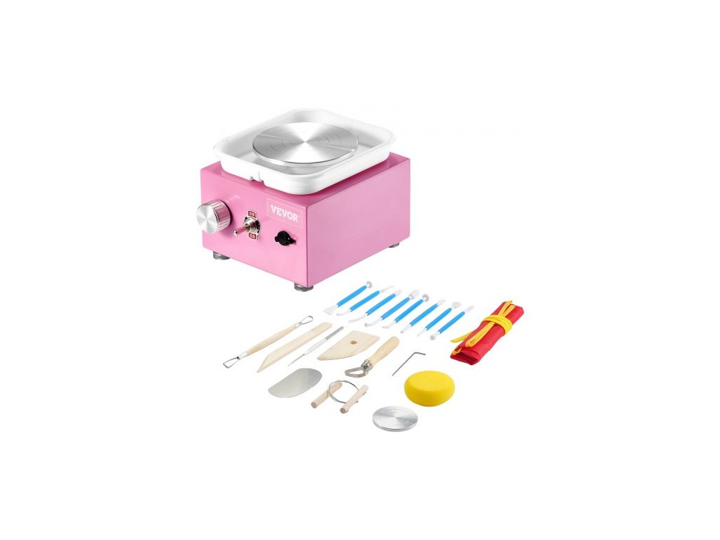 Mini hrnčířský kruh , nastavitelná rychlost 0-320 ot./min., odnímatelná tvarovací miska, 2,56"/3,94" 2 otočné talíře, elektrický keramický kruhový stroj, 18 ks příslušenství, pro umělecké řemeslné práce, domácí kutily, růžováUžijte si zábavný čas rodičů s dětmi
