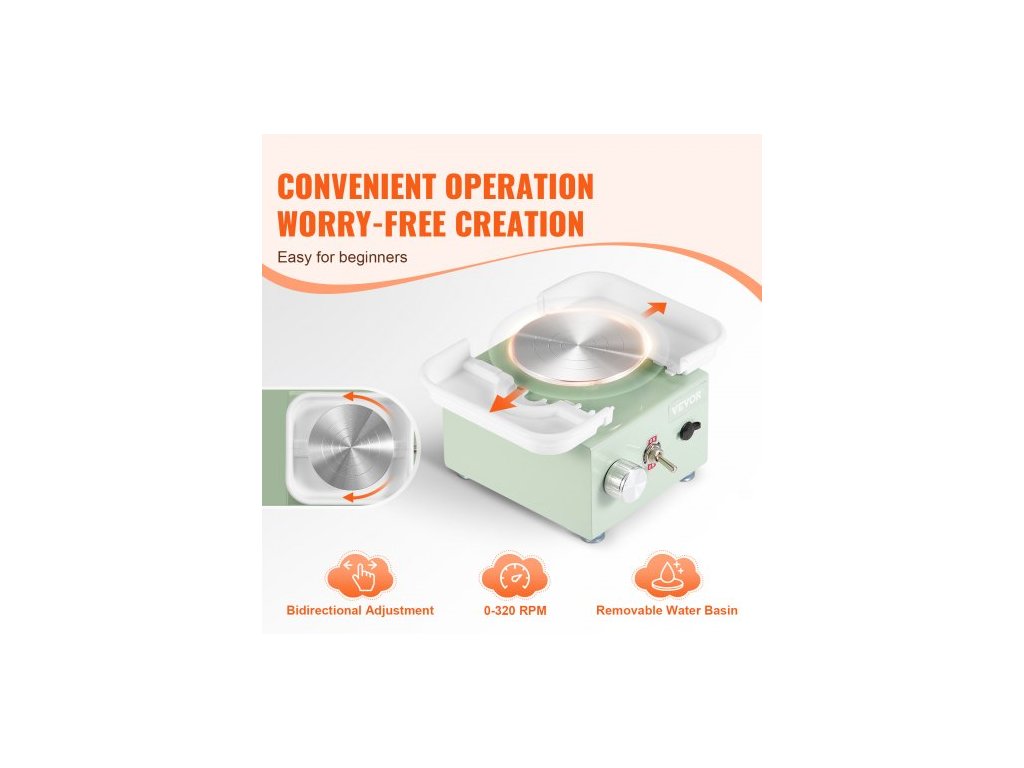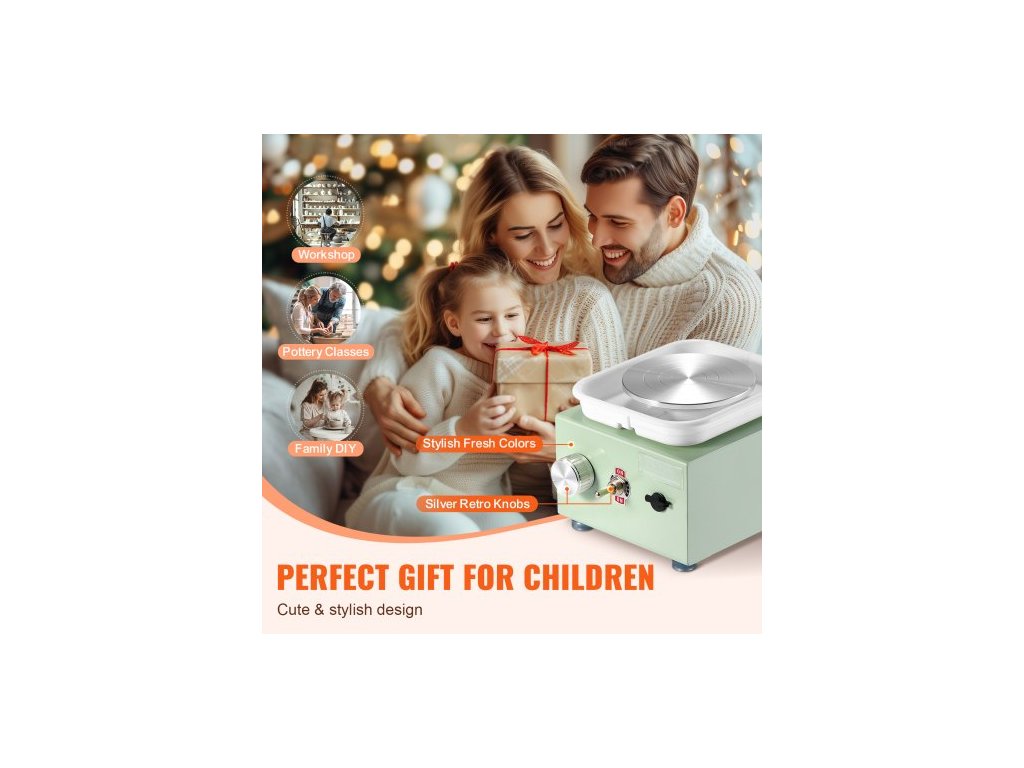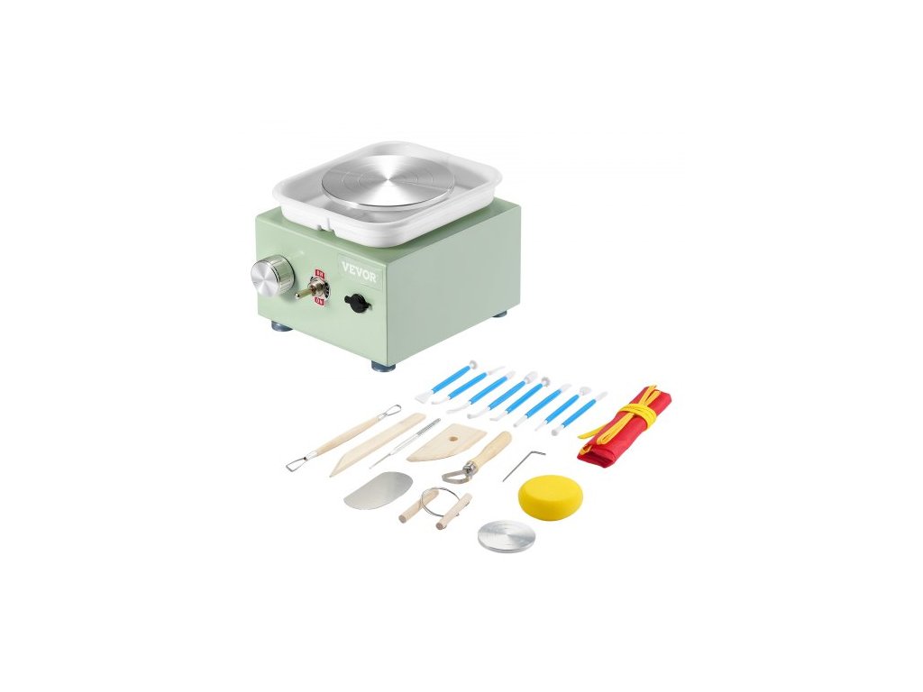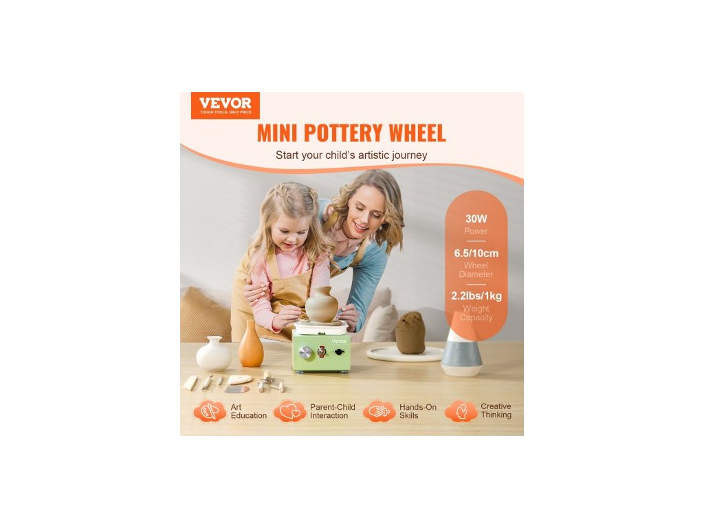 Mini hrnčířský kruh, 0-320 ot./min. Nastavitelná rychlost, odnímatelná tvarovací miska, 2,56"/3,94" 2 otočné talíře, elektrický keramický kruhový stroj, 18 ks příslušenství, pro umělecké řemeslné práce, domácí kutily, zelenýUžijte si zábavný čas rodičů s dětmi