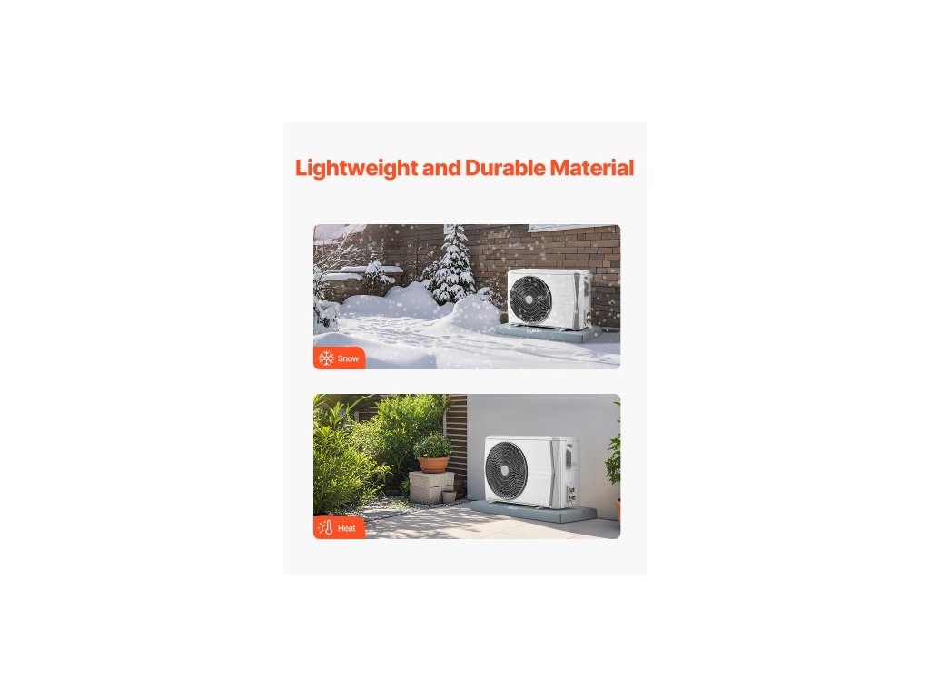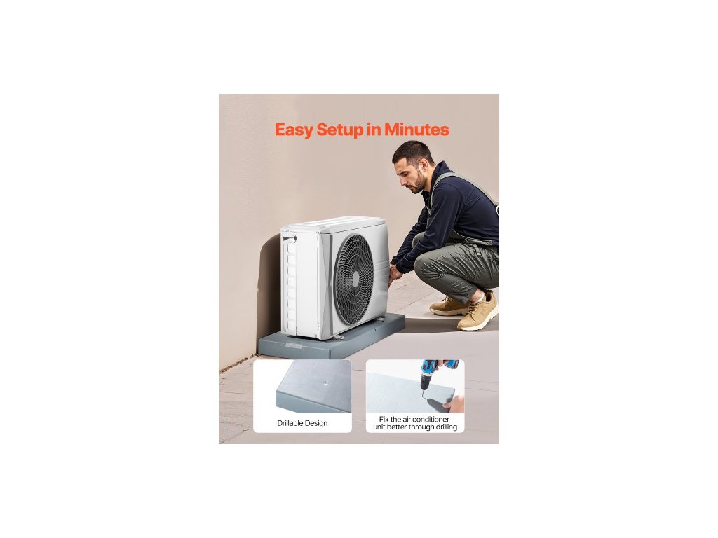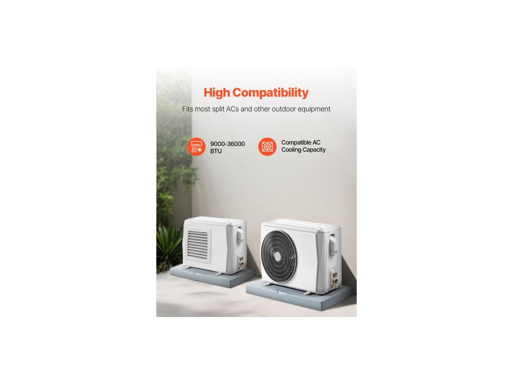 Mini Split Pad, pro klimatizační systémy s tepelným čerpadlem 9000-36000 BTU bezkanálové, 960x460x74 mm plastové venkovní kondenzační zařízení, antivibrační podložky pro systém tepelného čerpadla, maximální zatížení 181 kgSuper vysoká nosnost