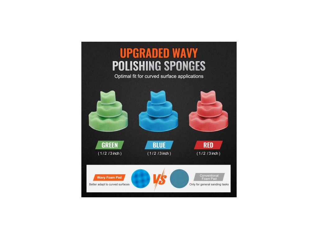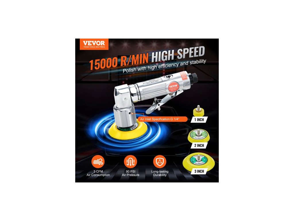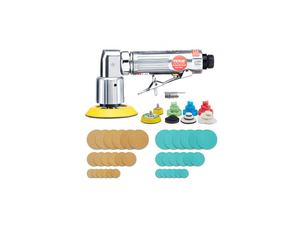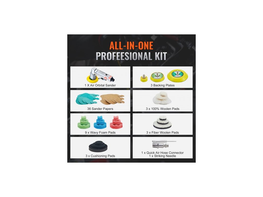 Mini vzduchová bruska, 2,5/5,1/7,6 cm orbitální vzduchová bruska, 15000 ot./min vysokorychlostní mini pneumatická bruska a leštička pro karosářské práce, sada 58 ks vzduchových brusek s vlnitými houbičkami, brusnými papíry a vlněnou podložkou