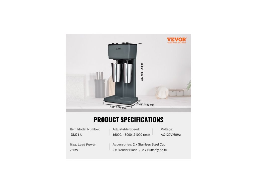 Mixér na mléčné koktejly, dvouhlavý mixér z nerezové oceliRychlé míchání