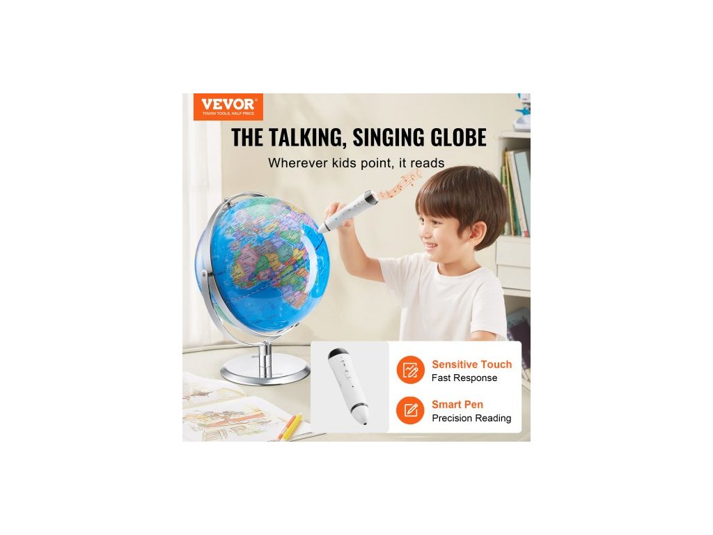Mluvící glóbus, 9 palců/228,6 mm, Interaktivní glóbus pro děti v raném vzdělávání, Vzdělávací glóbus s chytrým mluvícím perem, LED noční světlo, USB rozhraní, Dárky pro děti, chlapce a dívky (Jazyk mapy: Angličtina)