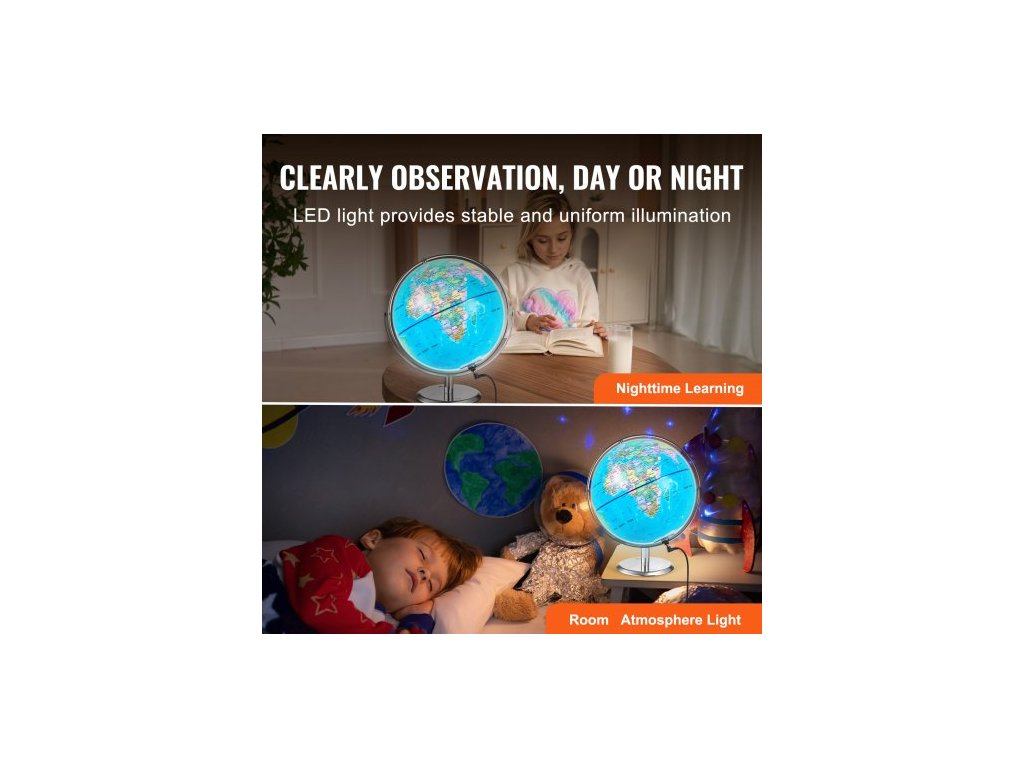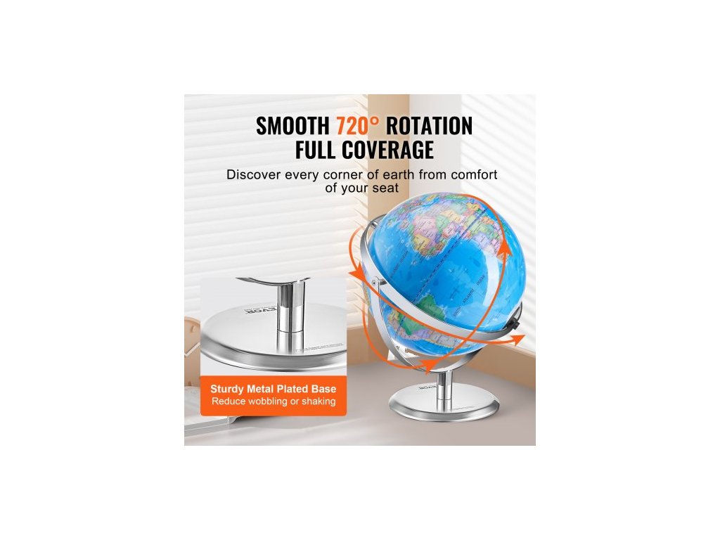 Materiál koule: ABS, Číslo modelu položky: SKU2, Rozměry produktu: 11,02 x 10,24 x 11,81 palců/280 x 260 x 300 mm, Materiál držáku: Kov, Úhel natočení: 720°, Čistá hmotnost: 2,87 lbs/1,3 kg, Velikost koule: 9 palců/228,6 mm, Napájení: USB DC5V