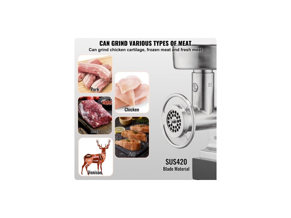 Mlýnek na maso , elektrický mlýnek na maso s čepelí, mlecí deska, výrobník klobás, nerezový profesionální mlýnek na maso pro kuchyň, restauraci, řeznictví22# profesionální stolní mlýnek na maso