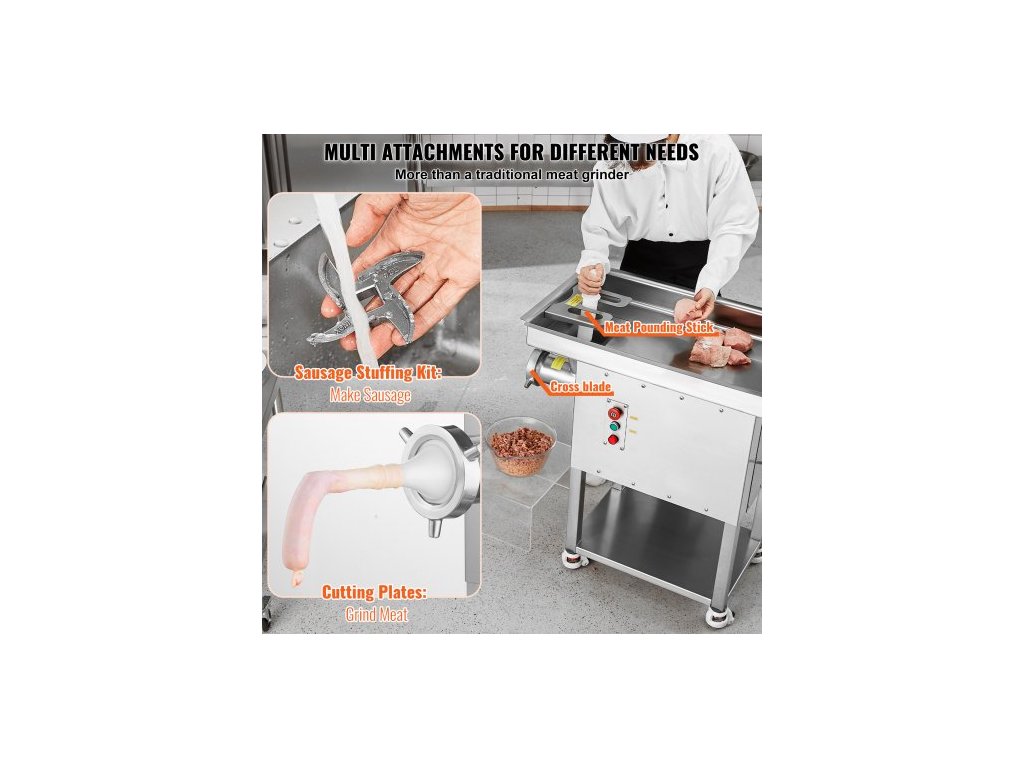 Mlýnek na maso , elektrický mlýnek na maso s kapacitou 22 lbs/min s nožem, mlecím talířem, výrobníkem klobás, nerezový profesionální mlýnek na maso pro kuchyň, restauraci, řeznictvíRychlé mletí masa