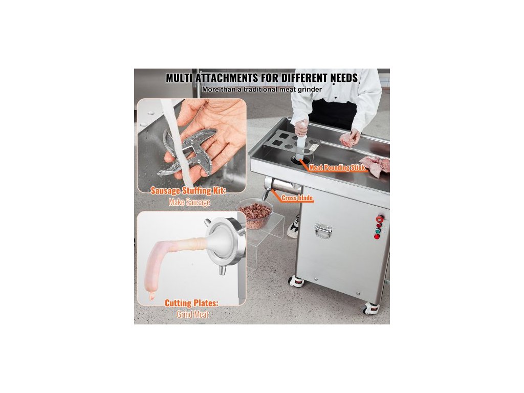 Mlýnek na maso , elektrický mlýnek na maso s kapacitou 36,7 lbs/min s nožem, mlecím talířem, výrobníkem klobás, nerezový profesionální mlýnek na maso pro kuchyň, restauraci, řeznictvíRychlé mletí masa