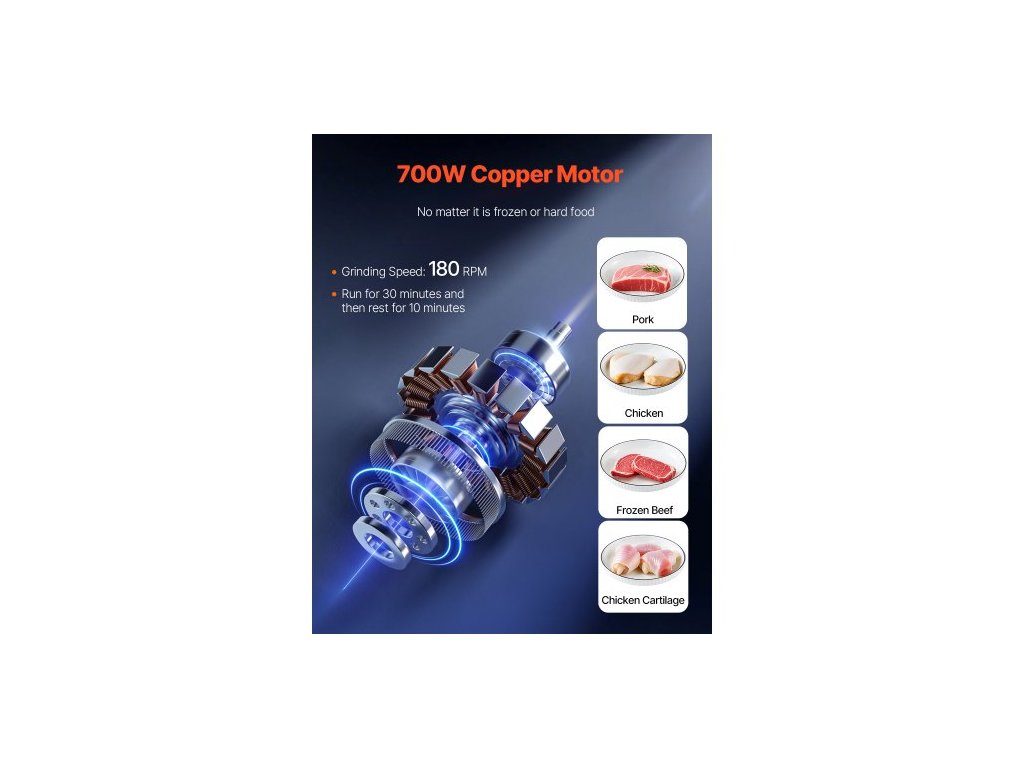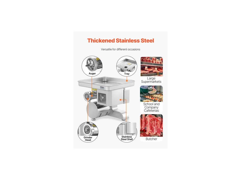 Velikost: 12#,Číslo modelu položky: JQ-90A-12,Jmenovitý výkon: 700W,Kapacita mletí masa: 11 lbs/min,Čistá hmotnost: 73,4 lbs / 33,3 kg,Rozměry výrobku: 15,55 x 16,93 x 15,35 palce / 395 x 430 x 390 mm