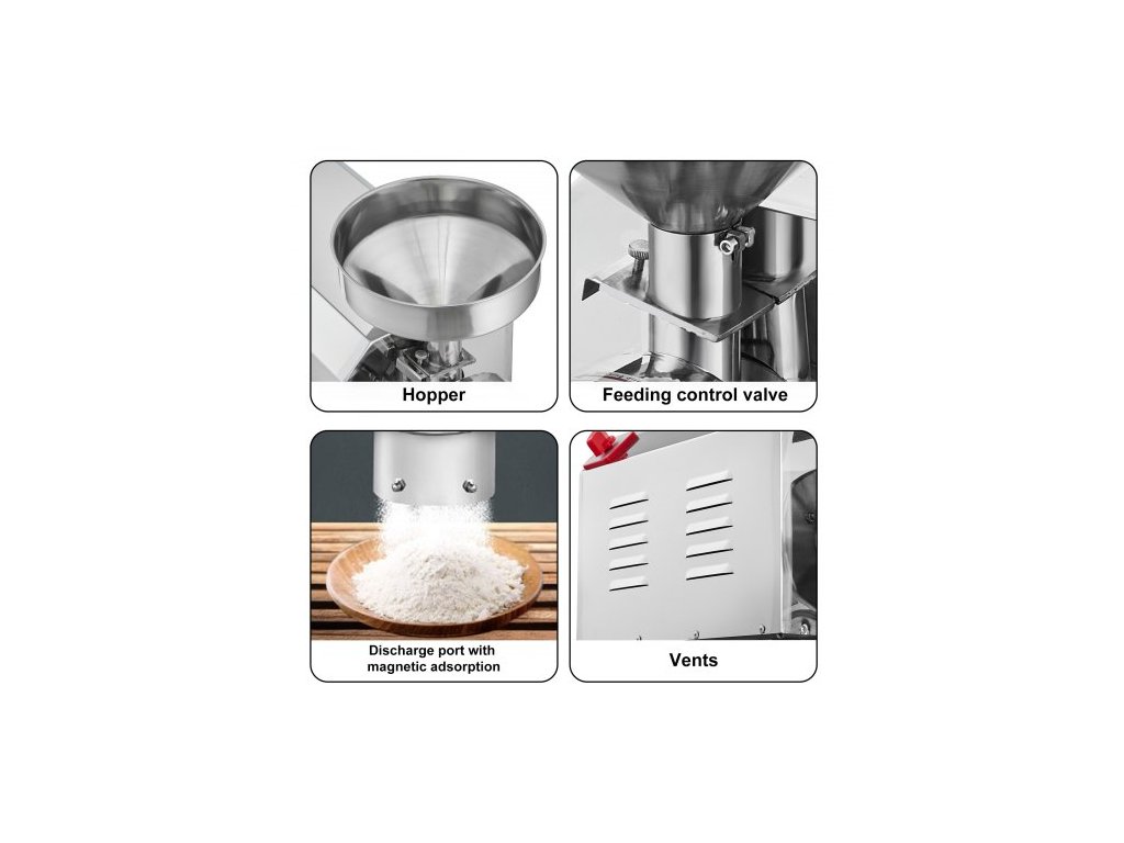 Mlýnek na sóju Komerční mlýnek na koření 2200W Mlýnek na kukuřici 50 kg/h Nerezový mlýnek na kukuřici Průmyslový mlýnek na mouku na pepř, sóju, arašídy, kukuřici2200W Komerční mlýnek na obilí