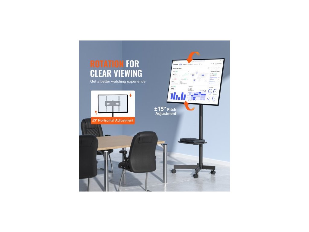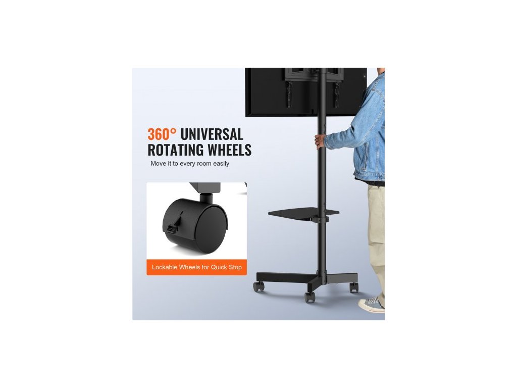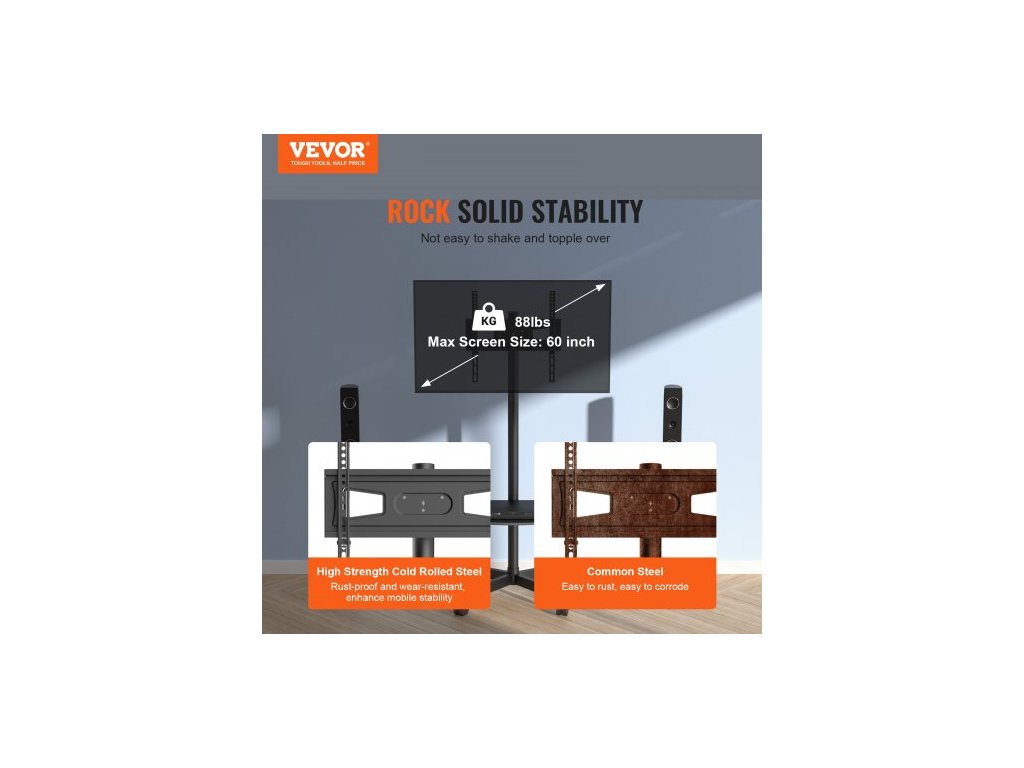 Mobilní TV stojan , mobilní TV vozík pro televizory s úhlopříčkou 23 až 60 palců, výškově nastavitelný přenosný TV stojan s kolečky, s přihrádkou na audiovizuální zařízení, pojízdný TV stojan s držákem do ložnice a obývacího pokojeBezpečnost a stabilita