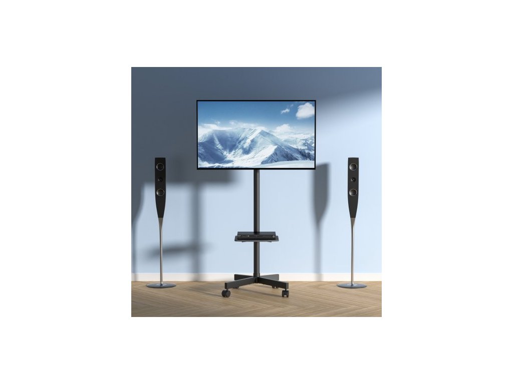 Mobilní televizní stojan , mobilní televizní vozík pro televizory s úhlopříčkou 23 až 60 palců, výškově nastavitelný přenosný televizní stojan s kolečky, s přihrádkou na audiovizuální zařízení, kolečkový televizní stojan s držákem do ložnice,