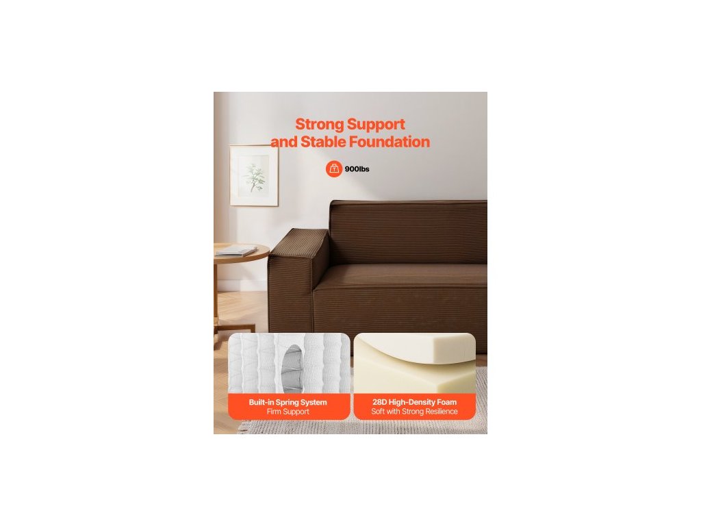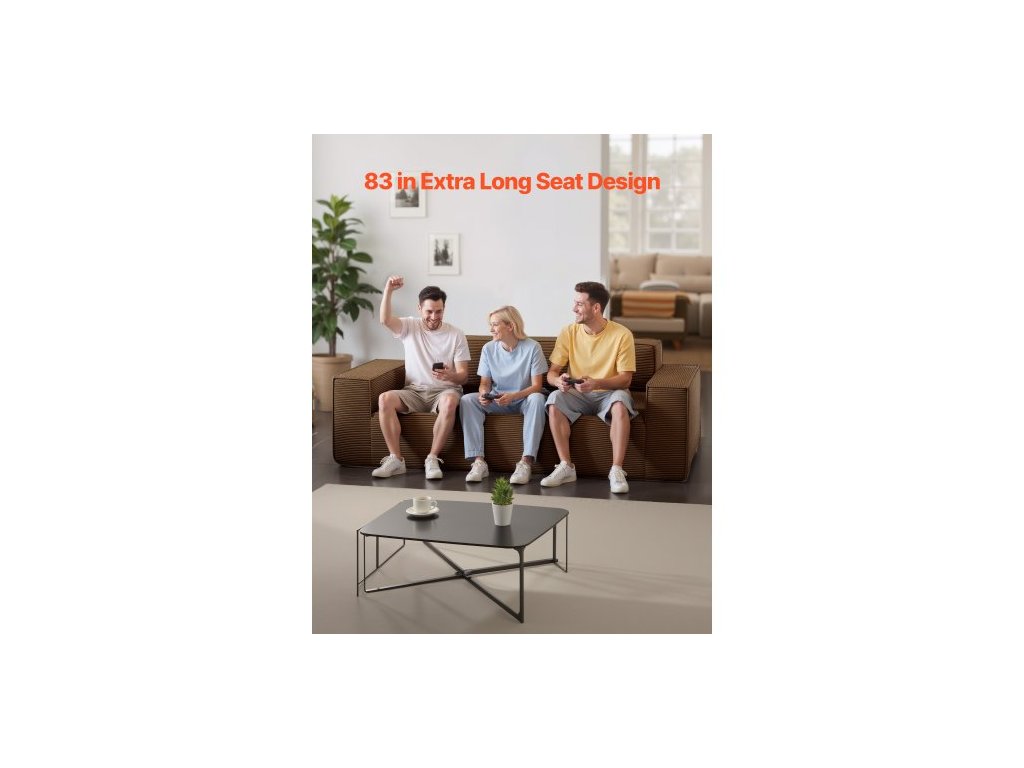 2110 mm Moderní pohovka, Pohodlná manšestrová pohovka s hlubokými sedáky, Pohovka Cloud s širokými područkami, Není nutná montáž, Velká plyšová pohovka ideální do obývacího pokoje, ložnice, bytu a kanceláře, HnědáLátková pohovka 2110 mm