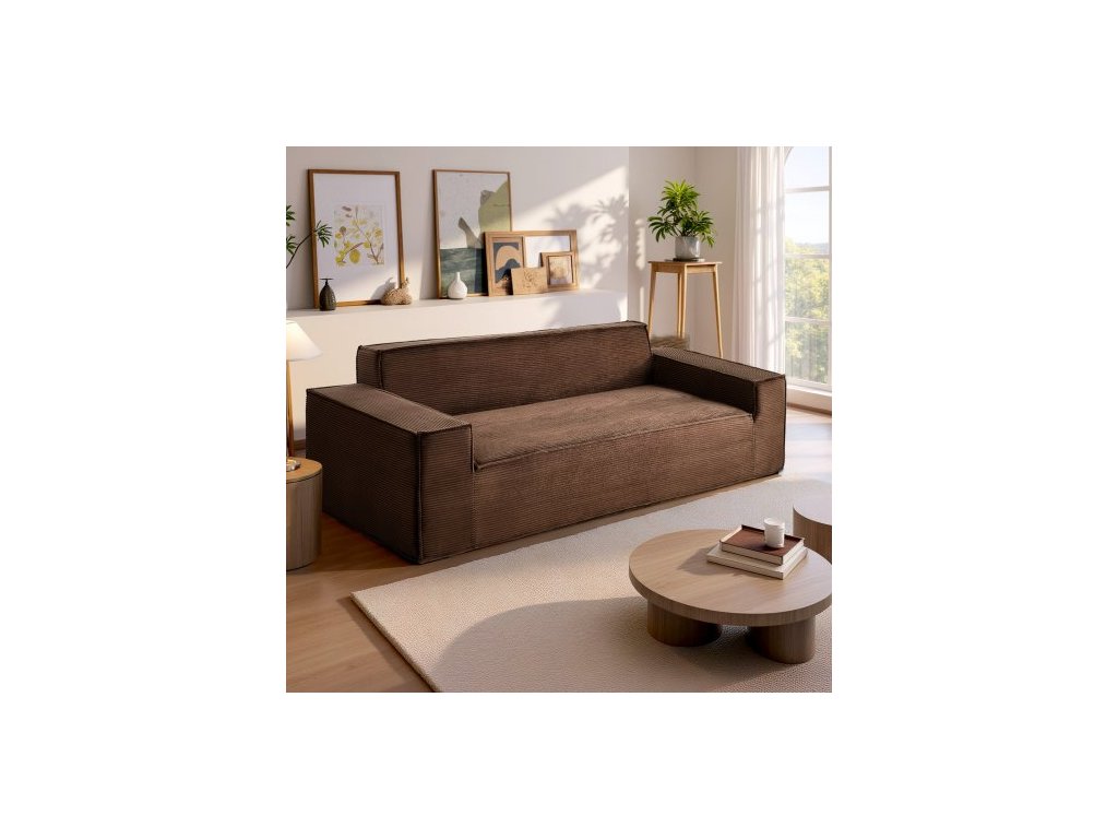 Moderní pohovka 2110 mm, pohodlná manšestrová pohovka s hlubokými sedáky, pohovka Cloud s širokými područkami, bez nutnosti montáže, velká plyšová pohovka ideální do obývacího pokoje, ložnice, bytu a kanceláře, hnědá