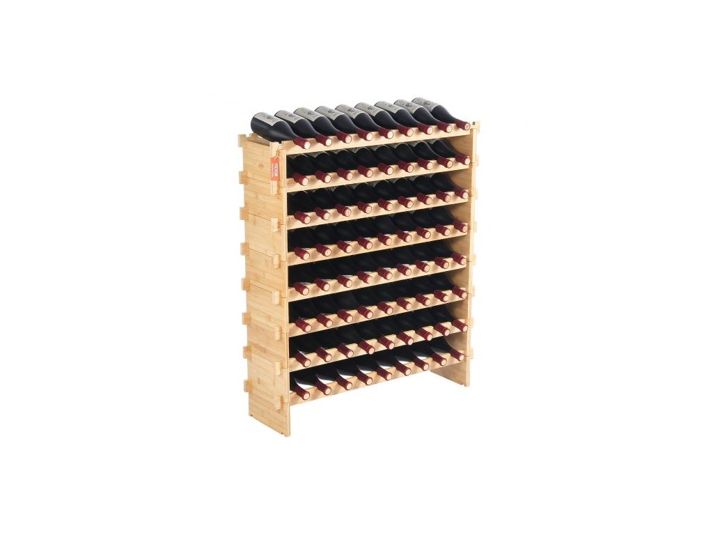 Modulární stojan na víno na 72 lahví, průběžné ukládání lahví Pinot, 8patrový bambusový dřevěný úložný stojan, podlahový volně stojící držák na víno, police bez kývání do kuchyně, baru a sklepaVelká kapacita