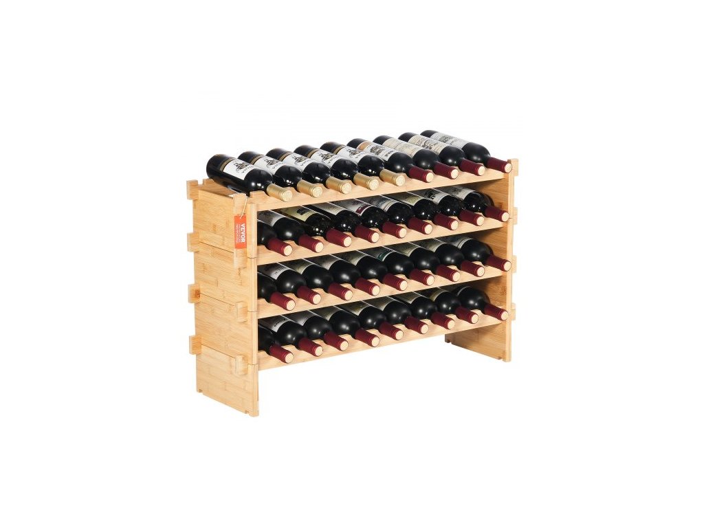 Modulární stojan na víno na 36 lahví, 4patrový stojan z masivního bambusového dřeva, volně stojící držák na víno, police bez kývání do kuchyně, baru a sklepa (přírodní barva)Velká kapacita