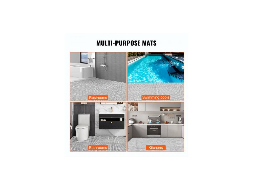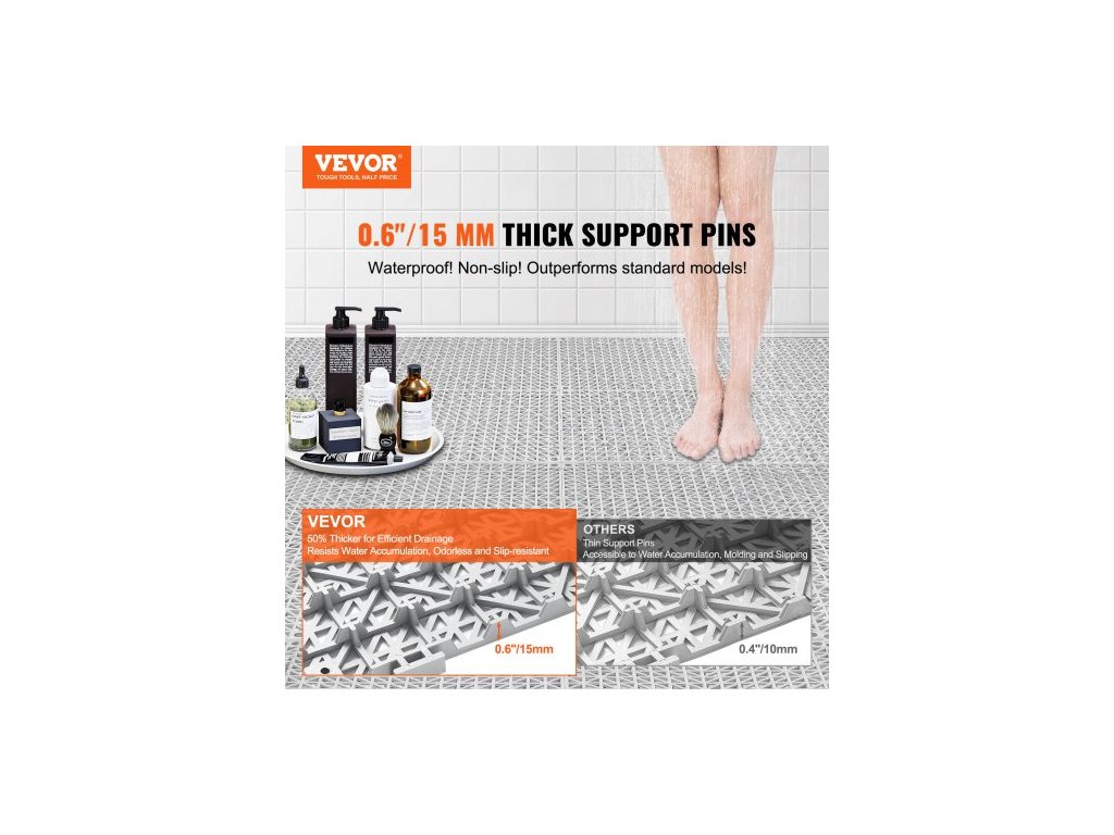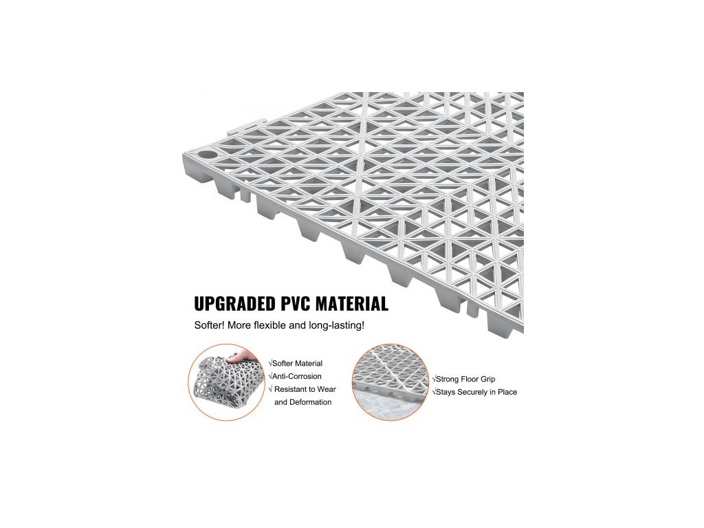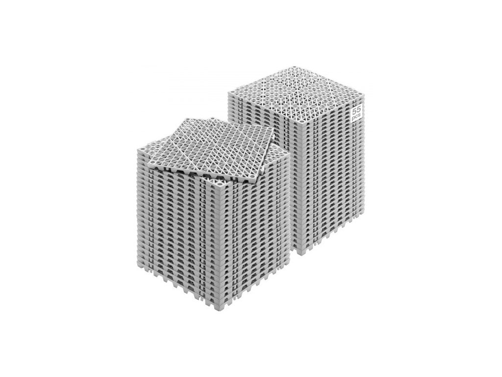 Modulární zámková podložka, 55 kusů drenážních rohoží 30 x 30 cm, měkké PVC zámkové drenážní dlaždice, protiskluzové drenážní otvory pro toaletu, koupelnu, kuchyň, bazén, mokré prostory, šedáVoděodolné a protiskluzové