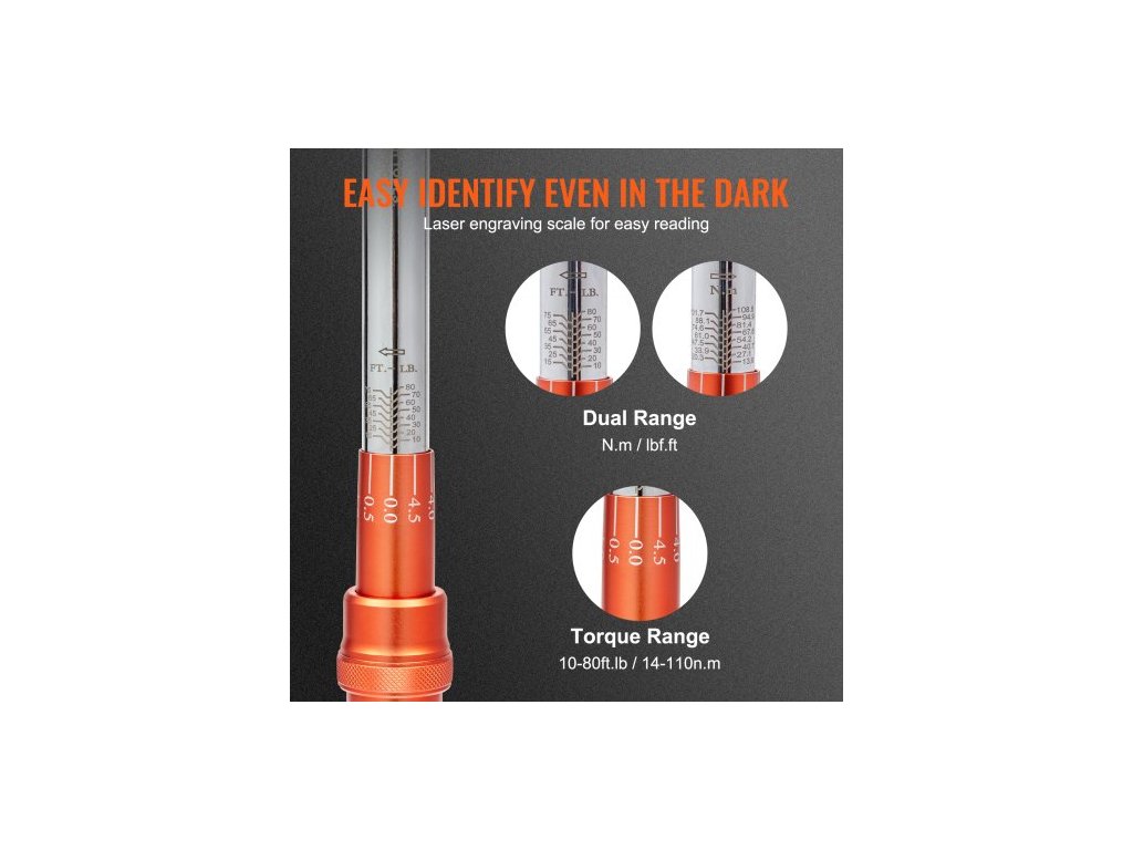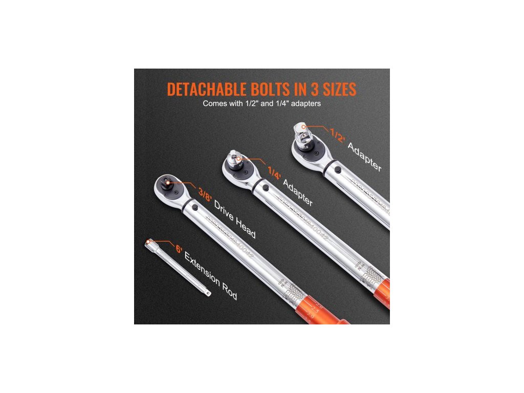 Momentový klíč , 3/8-palcový klikový momentový klíč 10-80ft.lb/14-110nm, sada nastavitelných momentových klíčů s oboustranným nastavením, mechanické stupnice s dvojitým rozsahem, sada momentových klíčů s adaptéry a prodlužovací tyčíPřednastavená přesnost momentu ±3 % splňuje požadavky přesných přístrojů a špičkové údržby automobilů. Tato sada momentových klíčů je vybavena 72zubou ráčnou a pyšní se kvalitou vojenské úrovně.