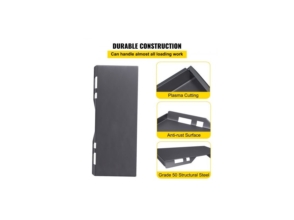 Montážní deska pro smykem řízený nakladač o tloušťce 0,24" Deska pro uchycení smykem řízeného nakladače z vysoce kvalitní oceli s rychloupínacími upevňovacími prvky a 3 dalšími svařovacími tyčemi, snadno se svařuje nebo šroubuje s různým příslušenstvímOcel třídy 50