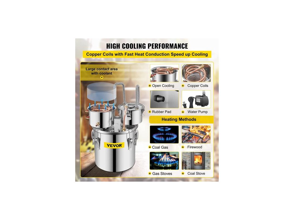 Moonshine Destilátor, 3Gal 12L nerezový vodní destilátor, měděná trubka s oběhovým čerpadlem, sada pro domácí vaření piva, vestavěný teploměr pro kutily, whisky, víno, brandy, lihoviny3 Gal Velká kapacita