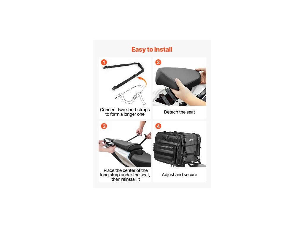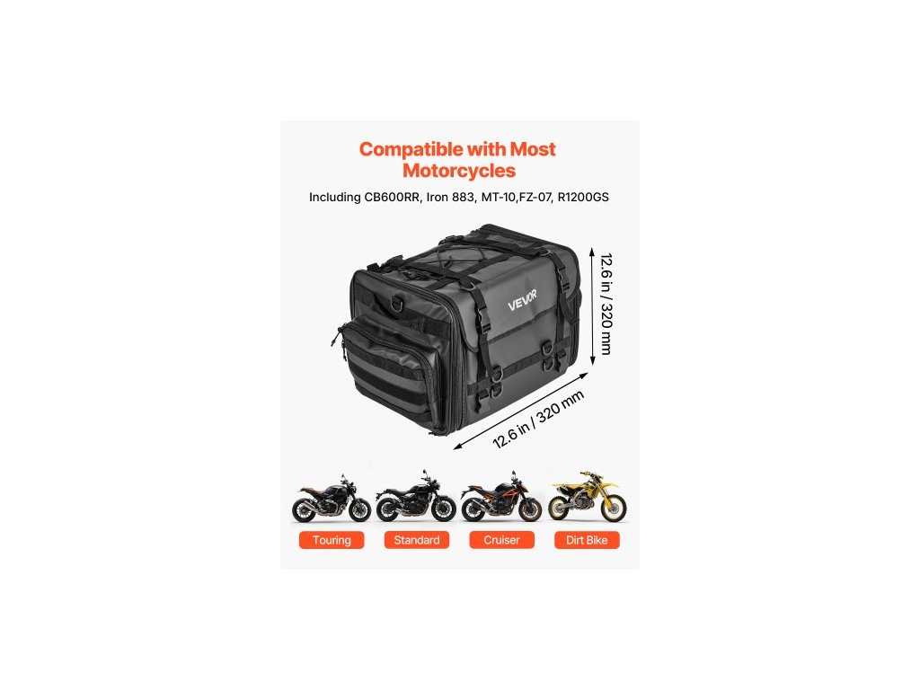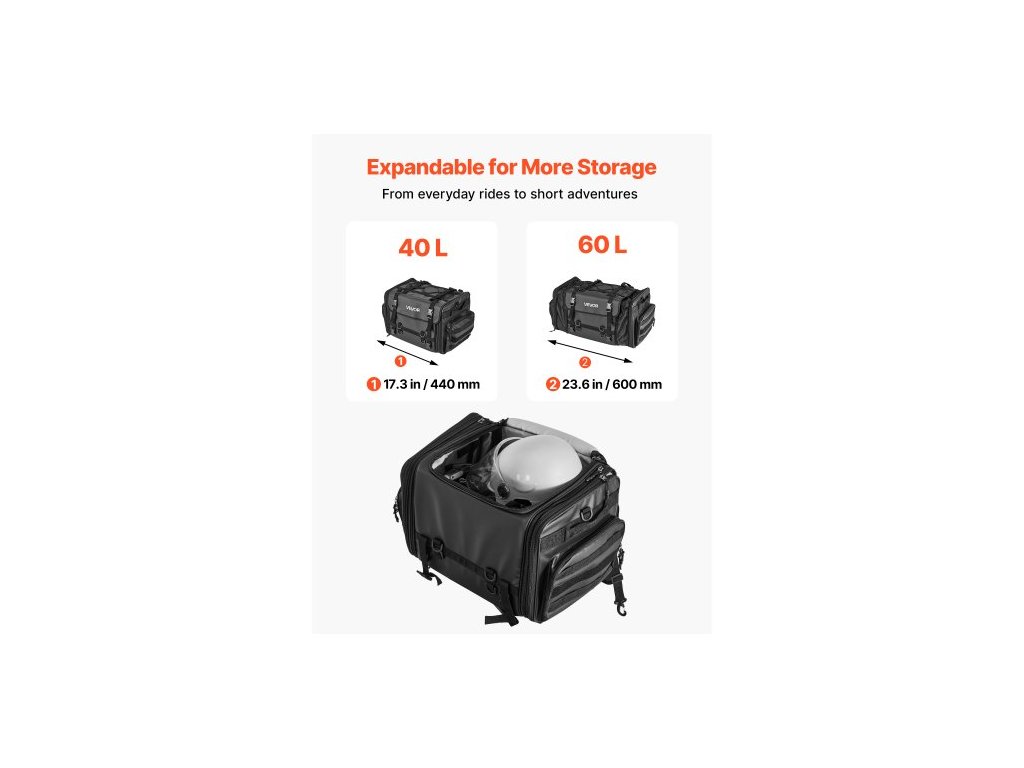 Motocyklová taška na zadní sedadlo, 40-60 l roztažitelná taška na zadní sedadlo motocyklu s nepromokavou pláštěnkou, skládací úložný prostor pro venkovní sporty a motocyklové zavazadla s ramenními popruhy, kapsou a elastickou šňůrkou, černáUniverzální motocyklová taška na zadní sedadlo