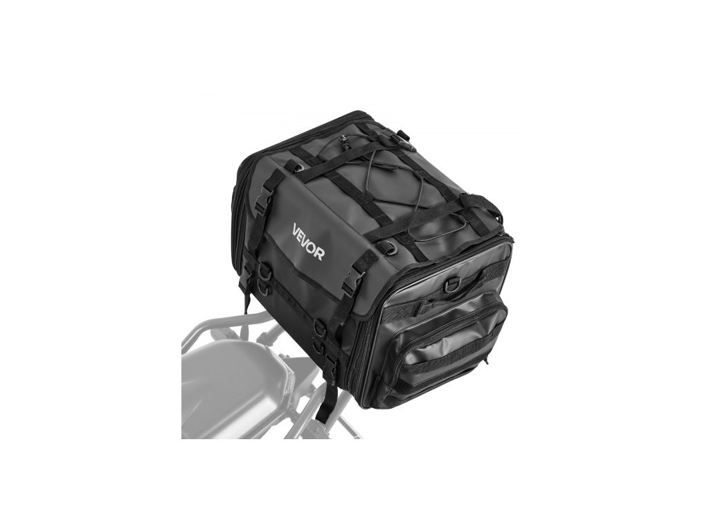 motocyklová taška na zadní sedadlo, 40-60 l rozšiřitelná taška na zadní sedadlo motocyklu s nepromokavou pláštěnkou, skládací venkovní sportovní úložný prostor pro motocyklové zavazadla s ramenními popruhy, kapsou a elastickou šňůrou, černá
