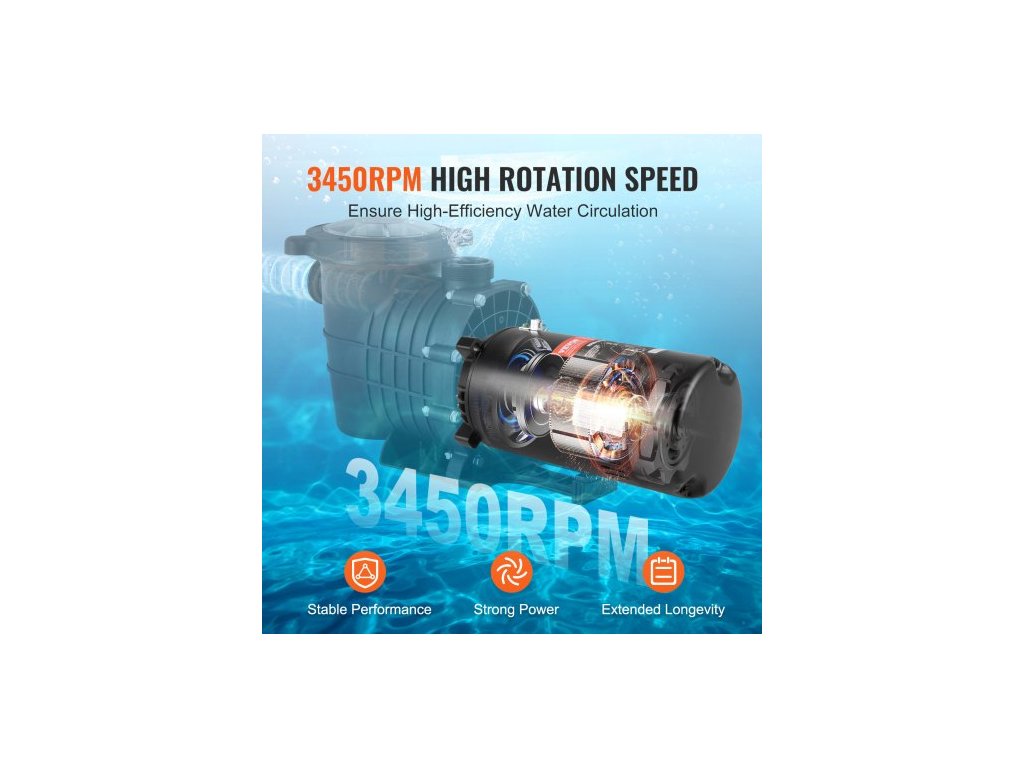 Bazénový motor 1,5 HP, rám 56J, 115V (13,6 A)/230V (6,8 A), 3450 ot./min, 60Hz, servisní faktor 1,3, kondenzátor 90μF/250V, otáčení proti směru hodinových ručiček, náhradní motor s kulatou přírubouVysokorychlostní výkon