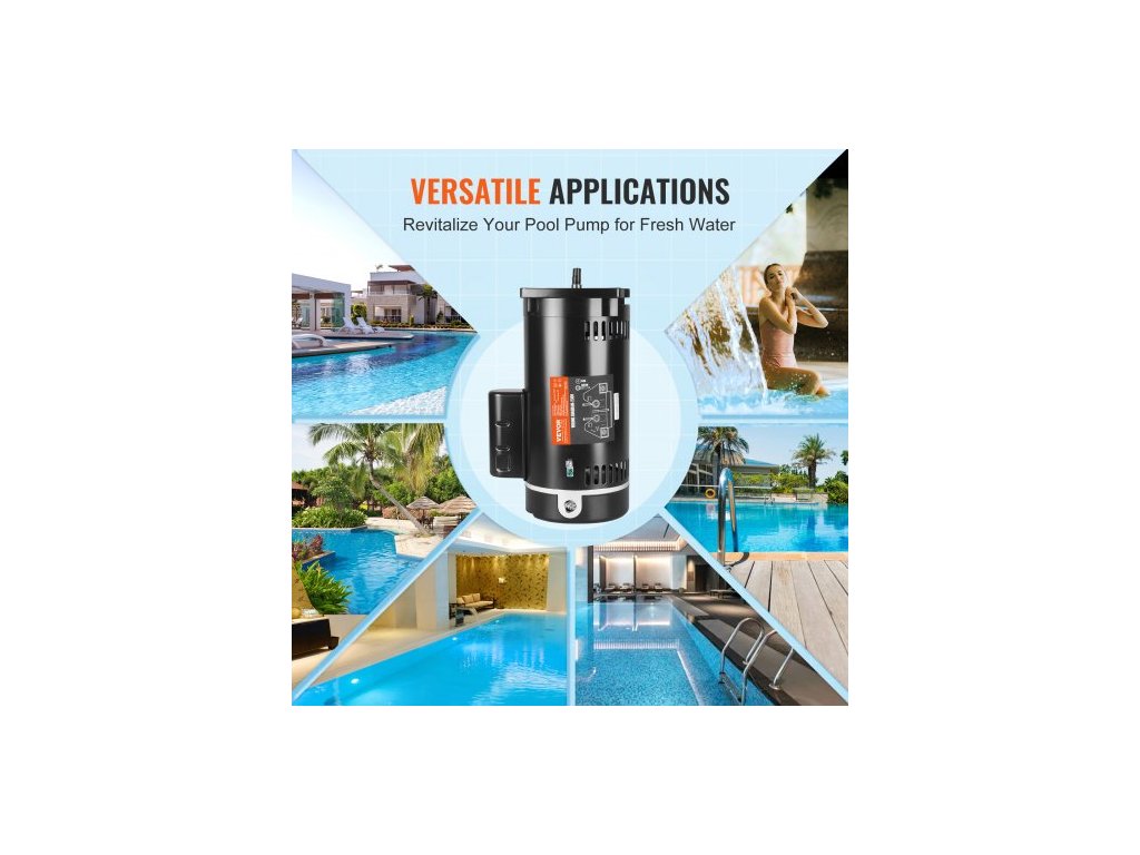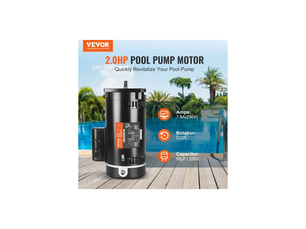 Motor bazénového čerpadla 2 HP, rám 56Y, 230 V (7,8 A) 3450 ot./min, 60 Hz, servisní faktor 1,3, kondenzátor 50 μF/250 V, otáčení proti směru hodinových ručiček, náhradní motor s čtvercovou přírubou