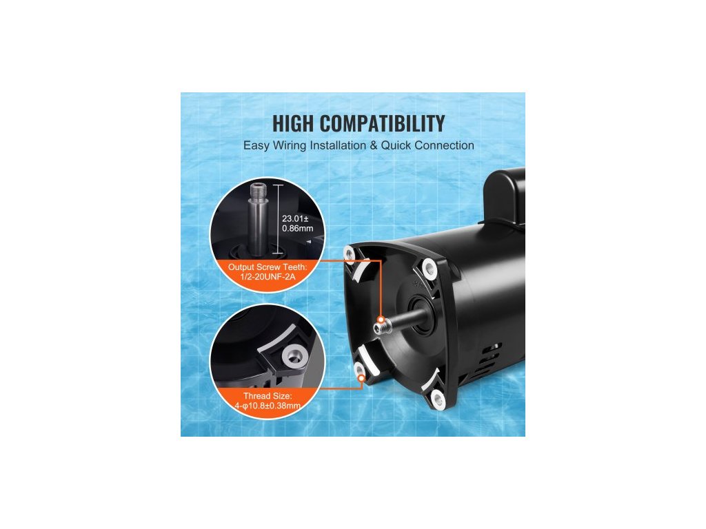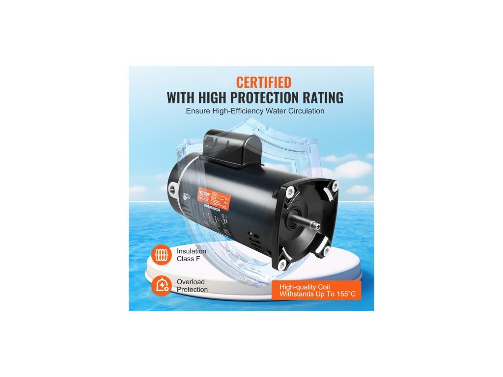 Bazénový motor 2 HP, rám 56Y, 230 V (7,8 A) 3450 ot./min, 60 Hz, servisní faktor 1,3, kondenzátor 50 μF/250 V, otáčení proti směru hodinových ručiček, náhradní motor s čtvercovou přírubouVysokorychlostní výkon