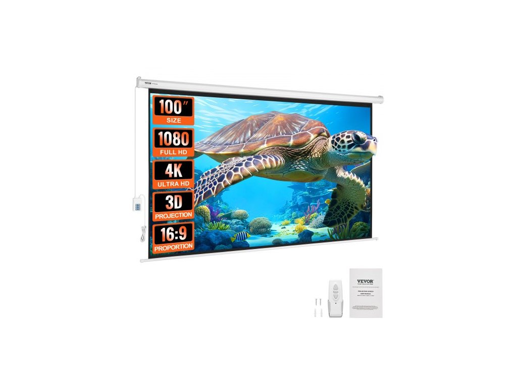 Projekční plátno s motorem, 100 palců, 16:9 4K 1080 HD, elektrické projekční plátno, automatické projekční plátno s dálkovým ovládáním, nástěnné filmové plátno pro rodinné domácí kino a kancelářMateriál bez vrásek