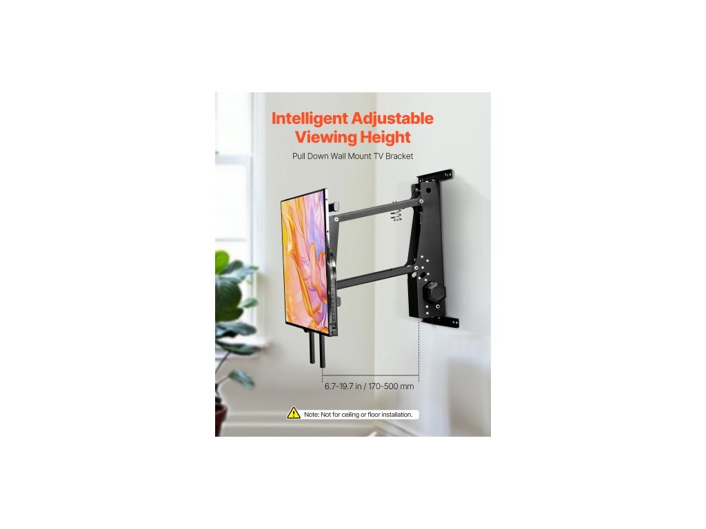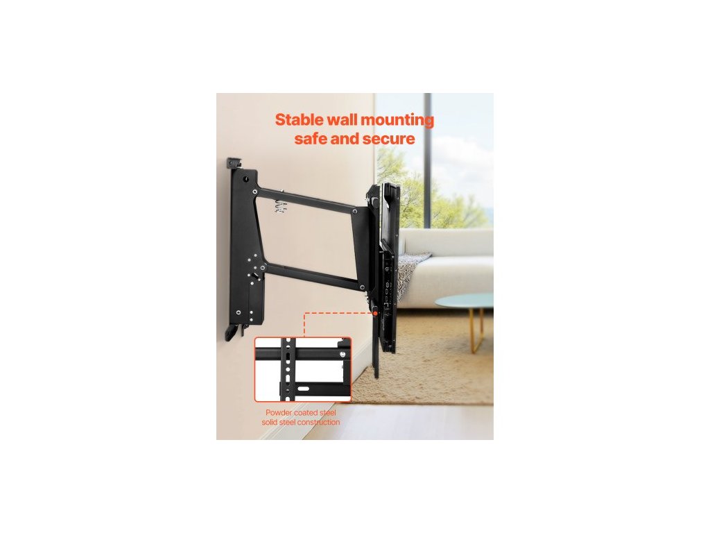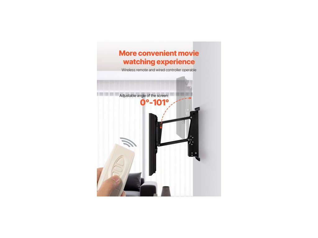 Motorizovaný nástěnný držák TV, držák TV pro TV s úhlopříčkou 32 až 65 palců, elektricky nastavitelný stropní držák TV, motorizovaný výklopný držák TV s maximálním uchycením VESA 24 x 24 palců, vhodný pro televizory do 38 kg