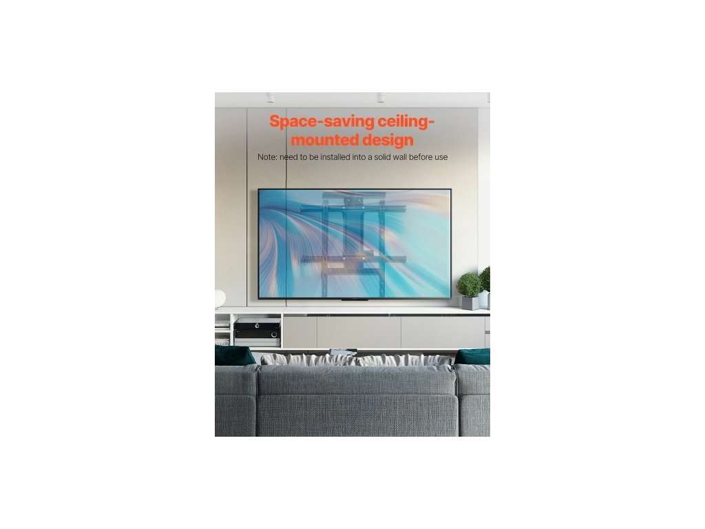 Motorizovaný nástěnný držák TV, držák TV pro TV s úhlopříčkou 32 až 65 palců, elektricky nastavitelný stropní držák TV, motorizovaný výklopný držák TV s maximálním uchycením VESA 24 x 24 palců, vhodný pro televizory do hmotnosti 38 kgPosuvná kovová police
