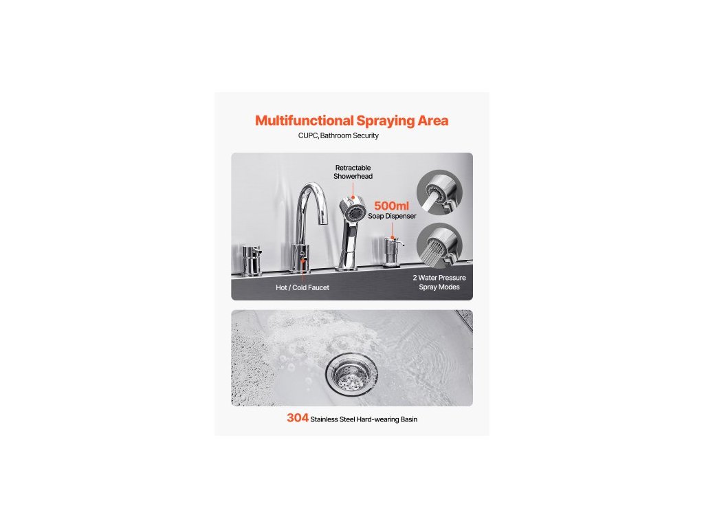 Mycí stanice pro psy 304 z nerezové oceli, vana pro péči o domácí mazlíčky o průměru 154,9 cm s protiskluzovou rampou s nízkým sklonem, úložný prostor, kohoutek na teplou a studenou vodu, univerzální vana pro stříhání zvířat, vhodná pro všechny velikosti (levé dveře)Multifunkční sprchový kout