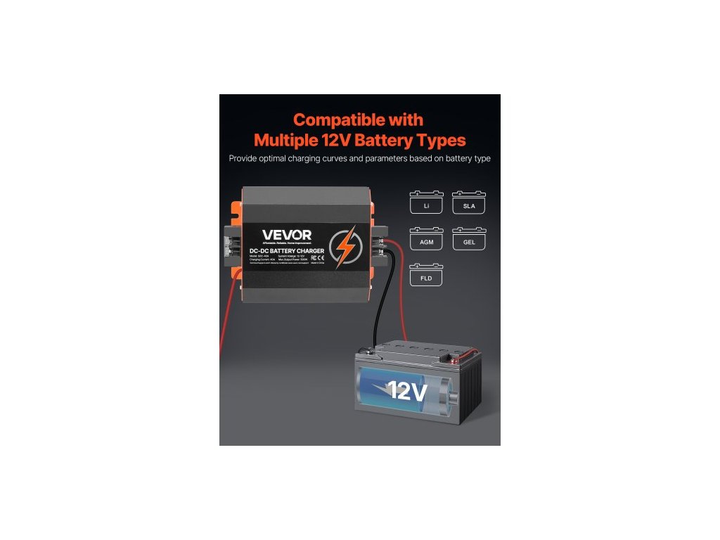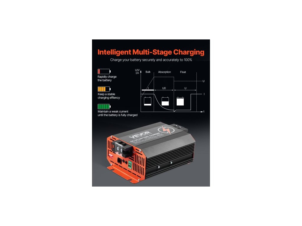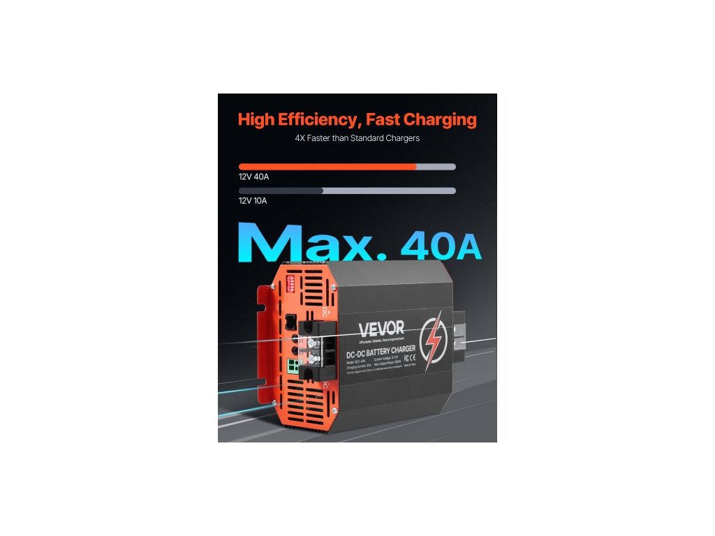Nabíječka baterií 12V 40A DC-DC, 500W, integrovaná nabíječka baterií pro olověné, lithiové, AGM, gelové a zaplavené baterie, inteligentní vícestupňové nabíjení, pro obytné vozy, užitková vozidla, lodě, jachtyEfektivní nabíjení