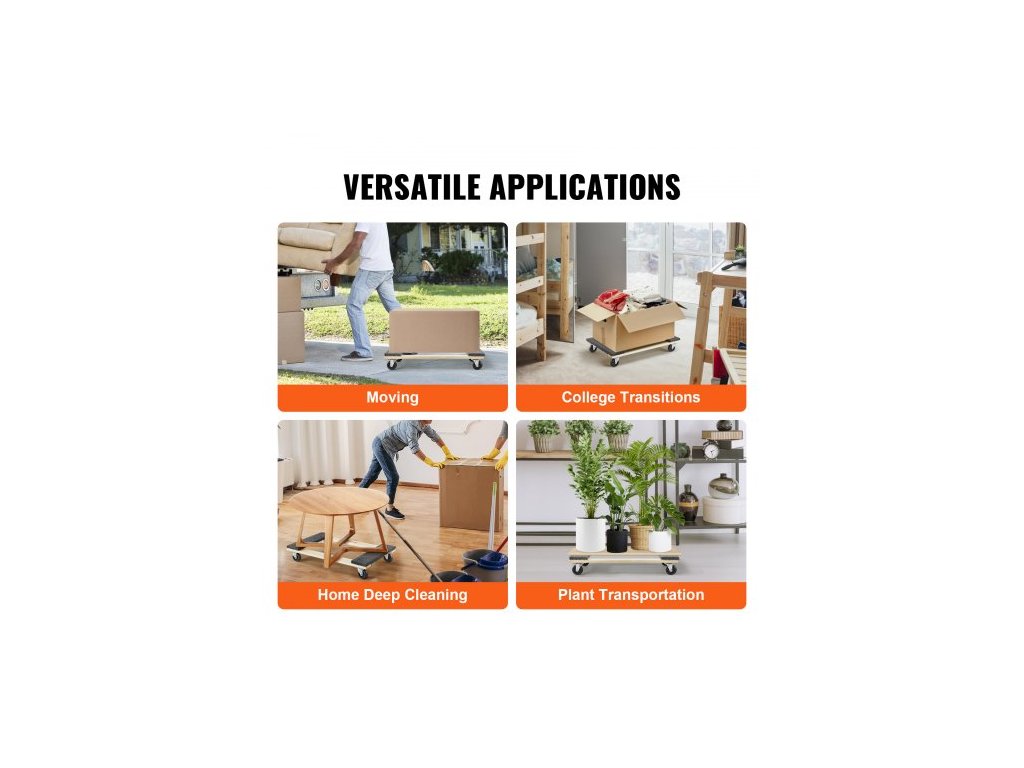 Nábytkový vozík, nosnost 456 kg, 46 cm x 76 cm, otočná kolečka z PP o rozměrech 4 x 76 cm, odolný stěhovací vozík z tvrdého dřeva, stěhovací vozík, stěhovací vozík s kolečky pro těžký nábytek v domácnostiSnadná instalace koleček